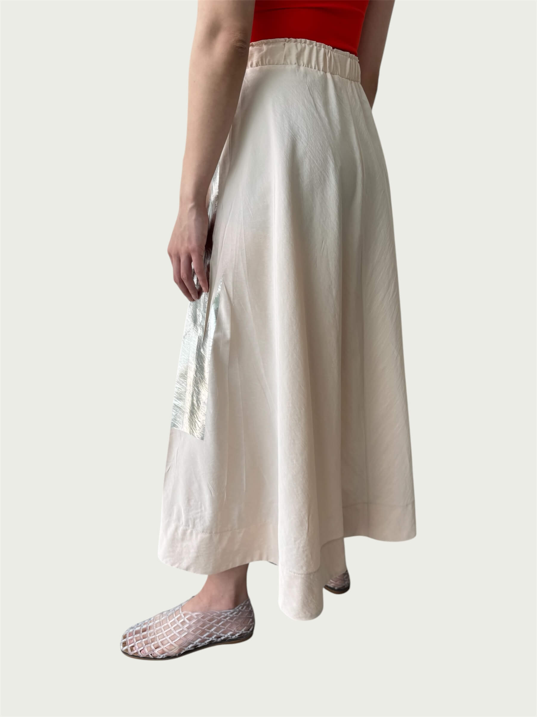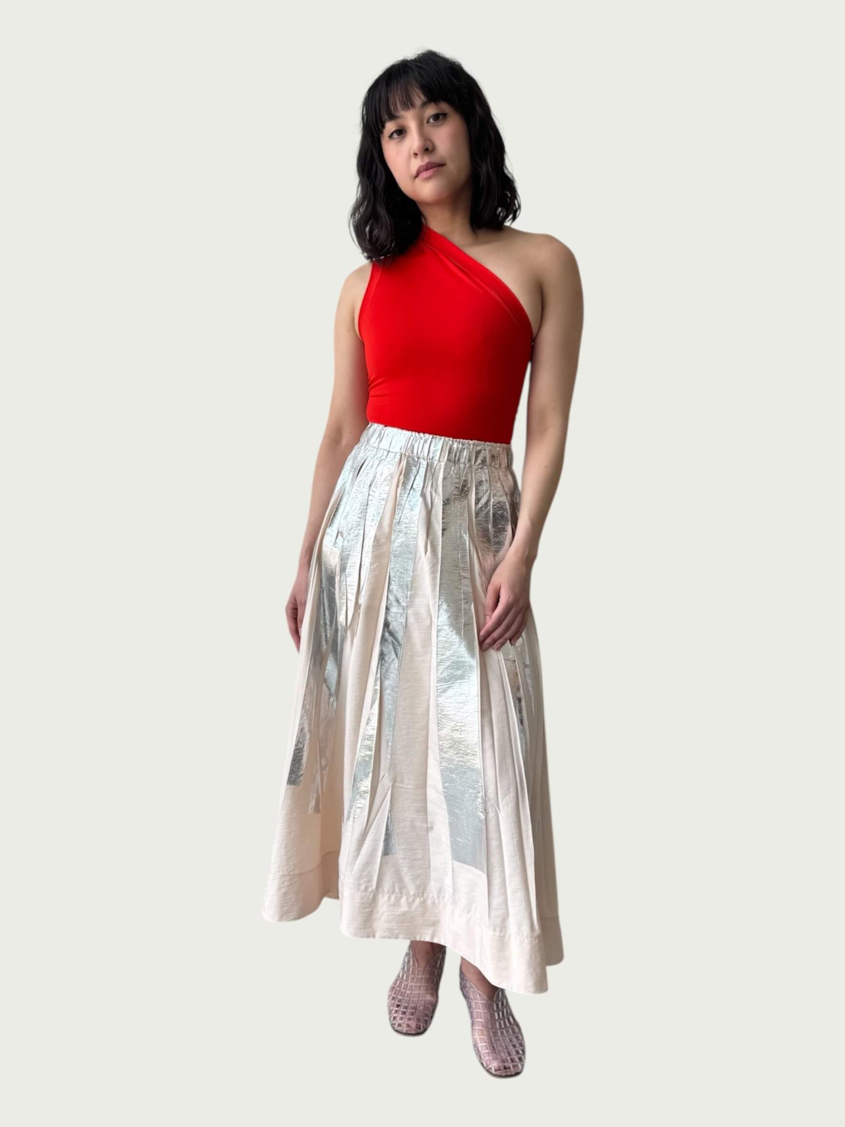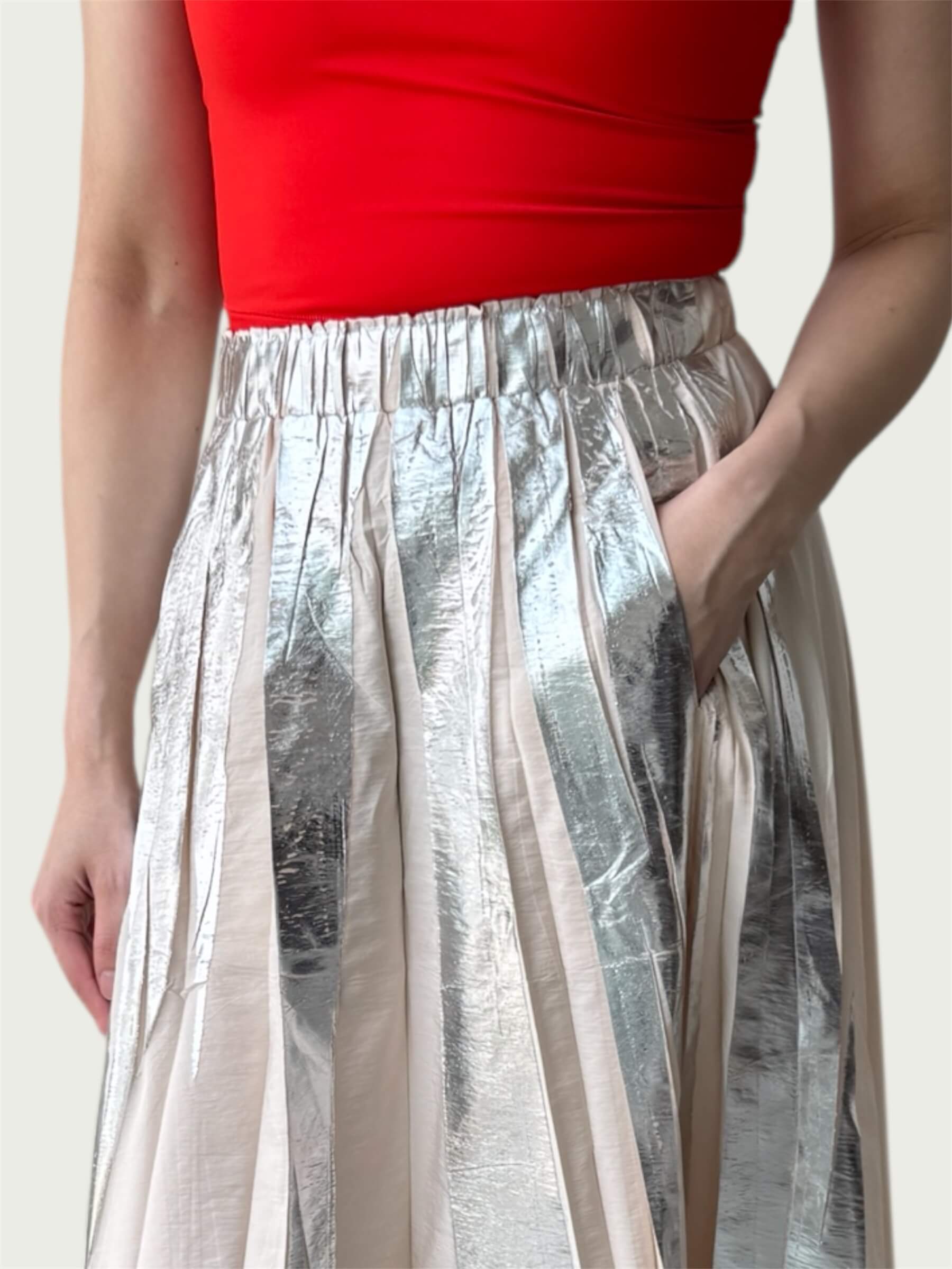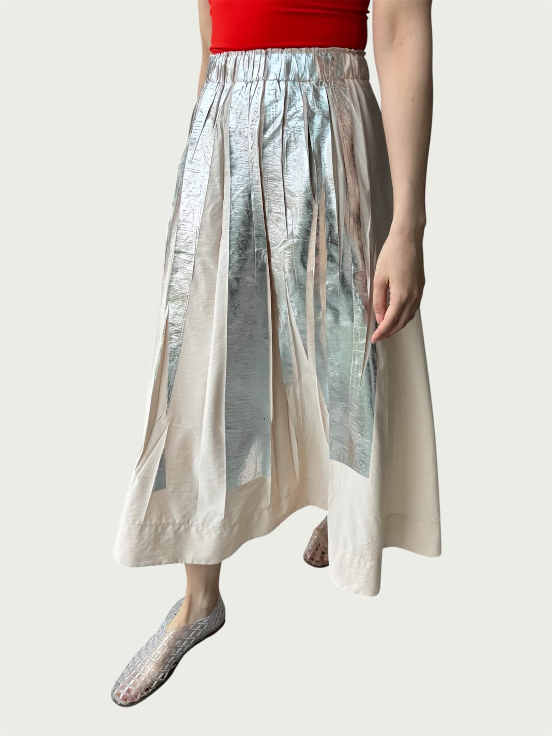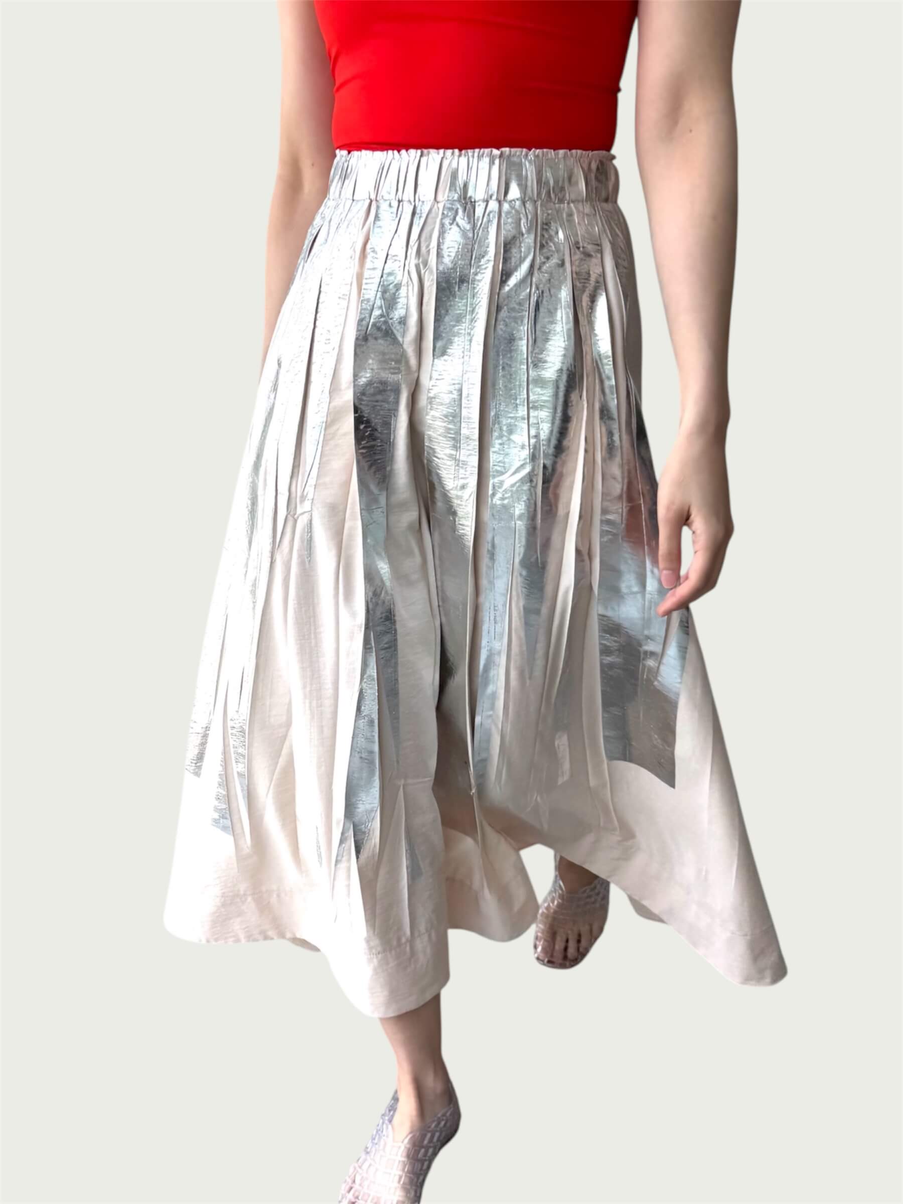 Full Tempo Maxi Skirt — Foil Form I, Winter Peach with Silver Foil