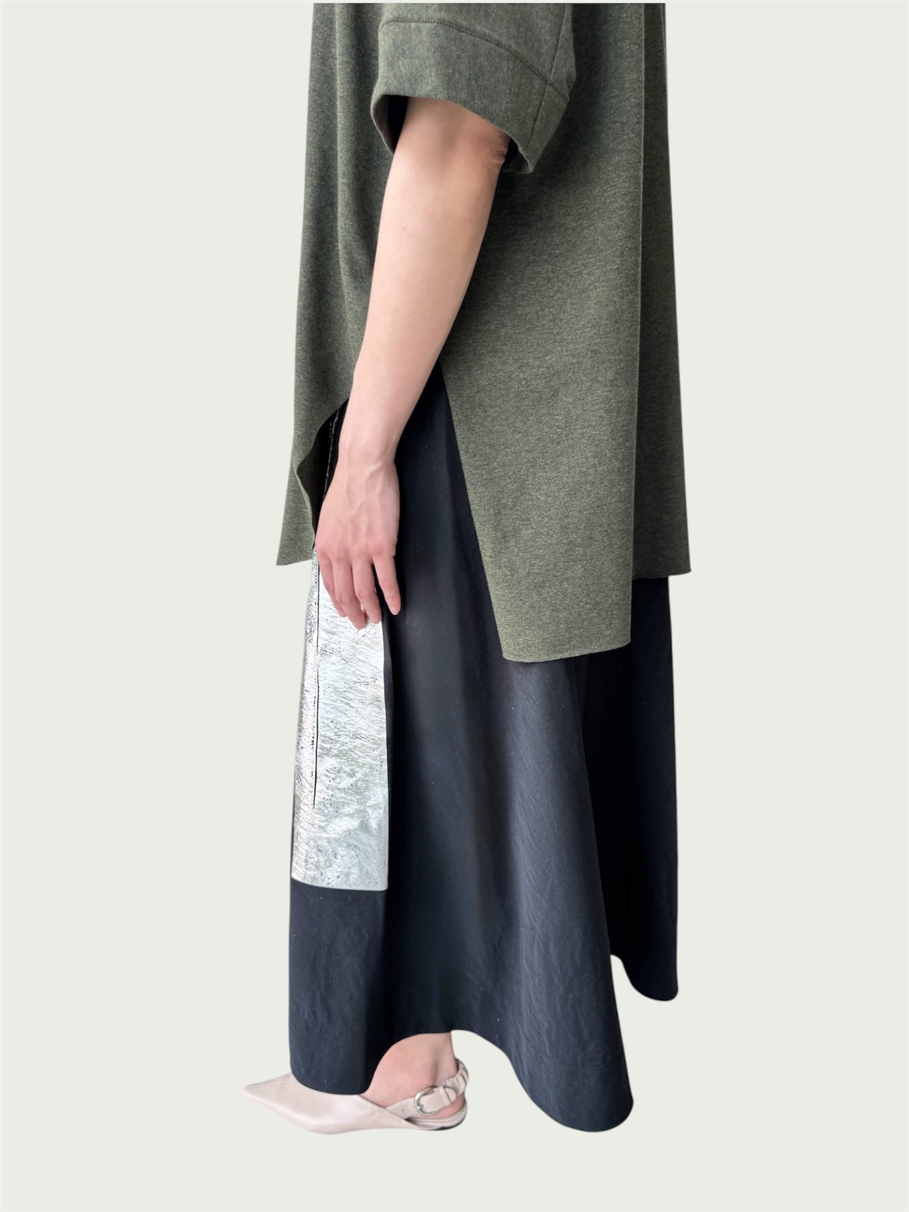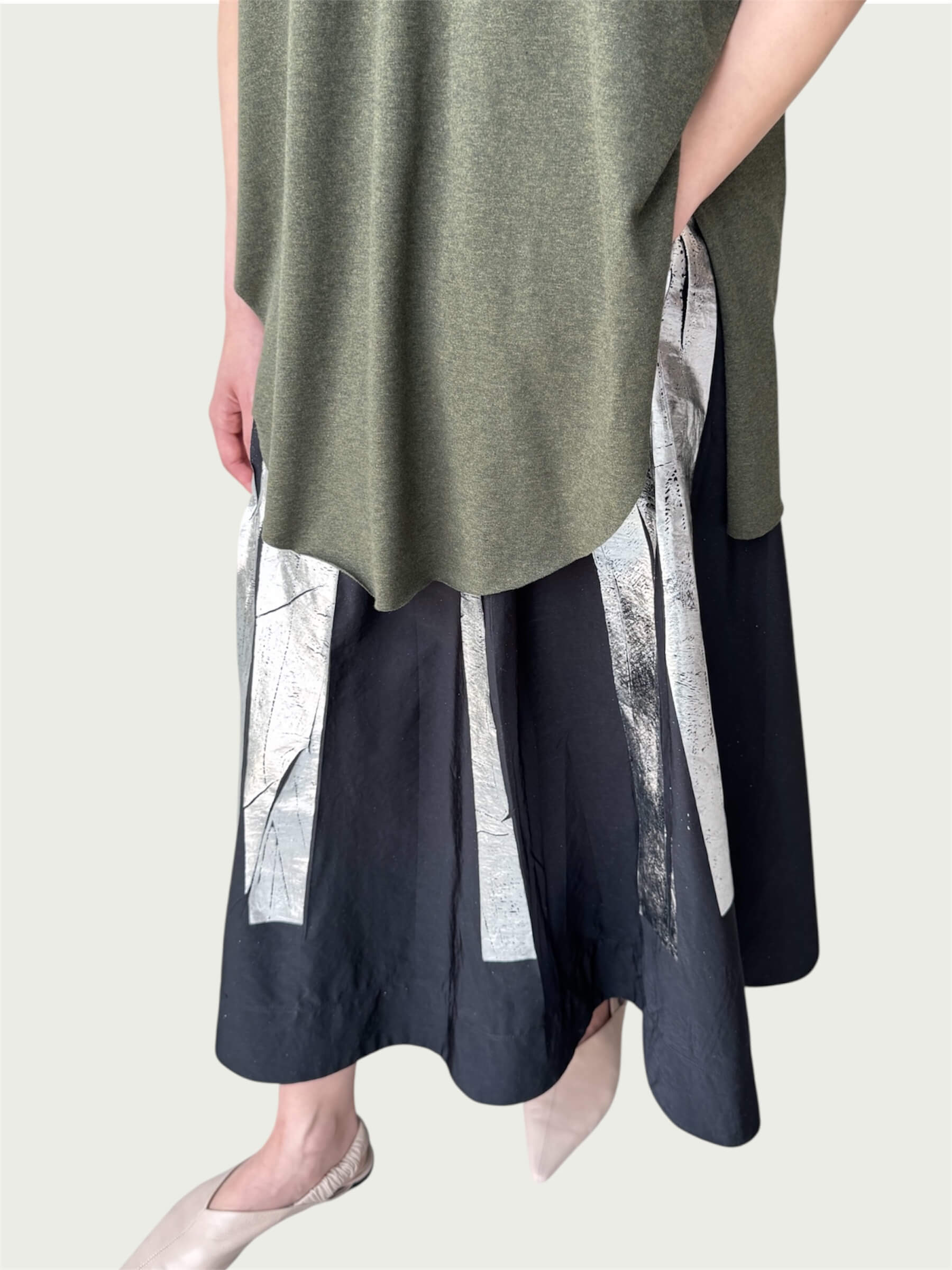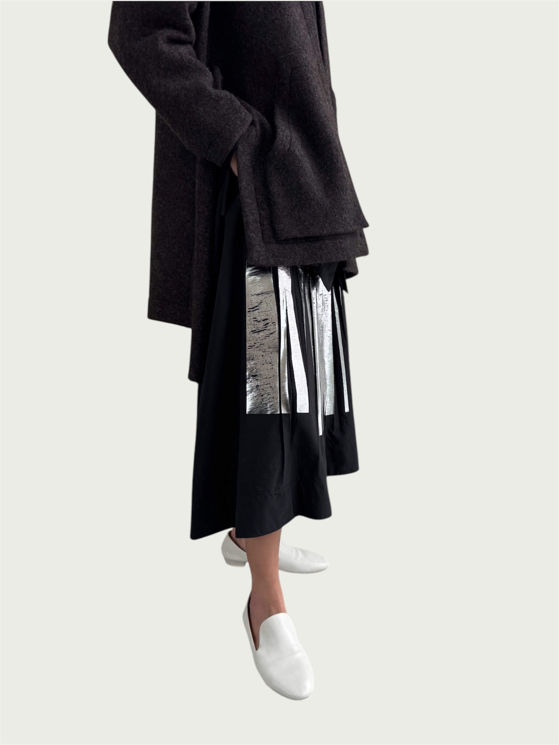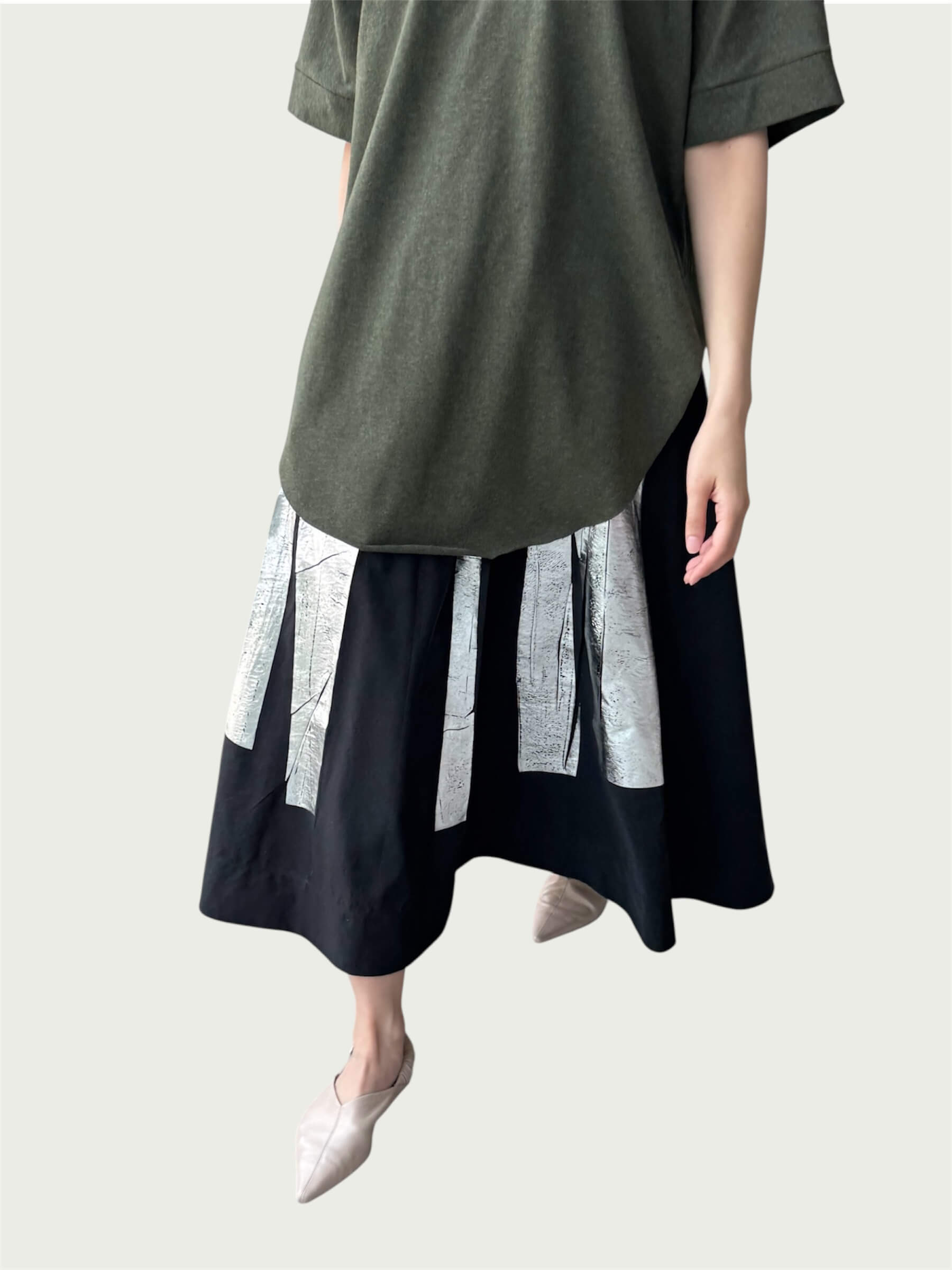 Full Tempo Maxi Skirt in Black with Silver Foil
