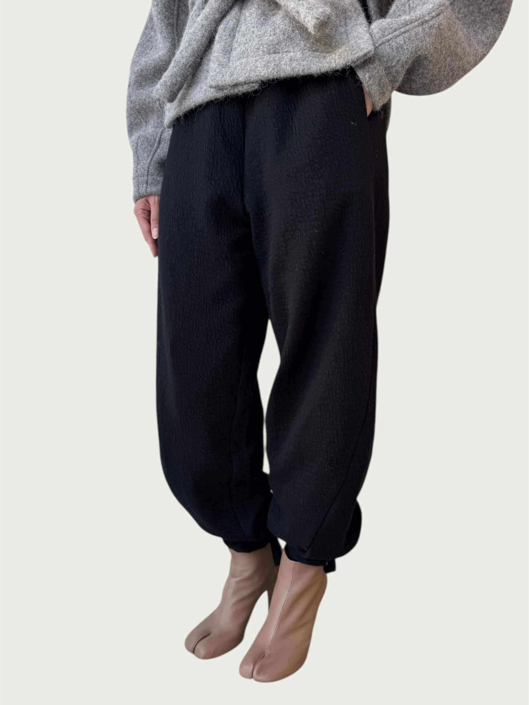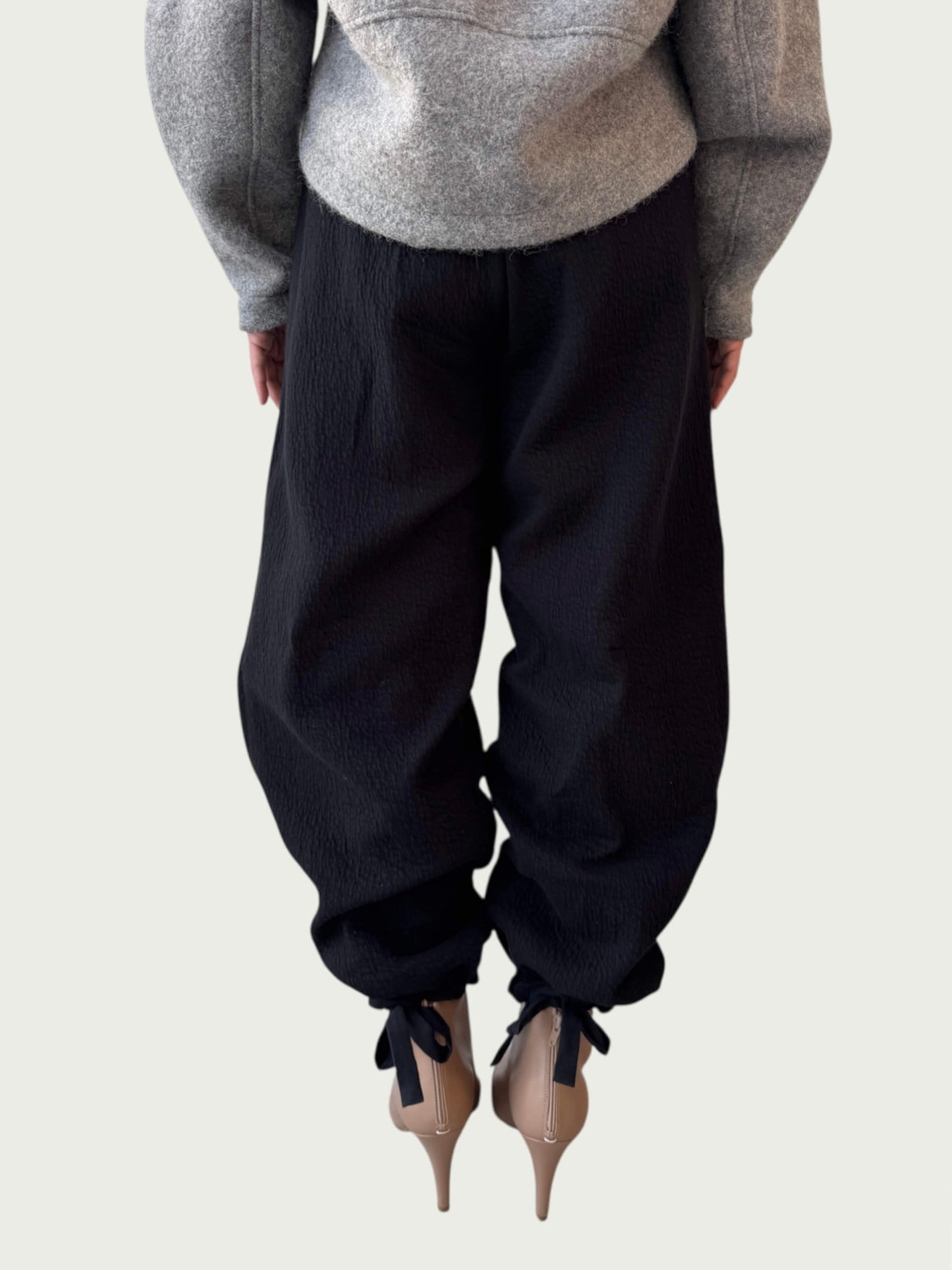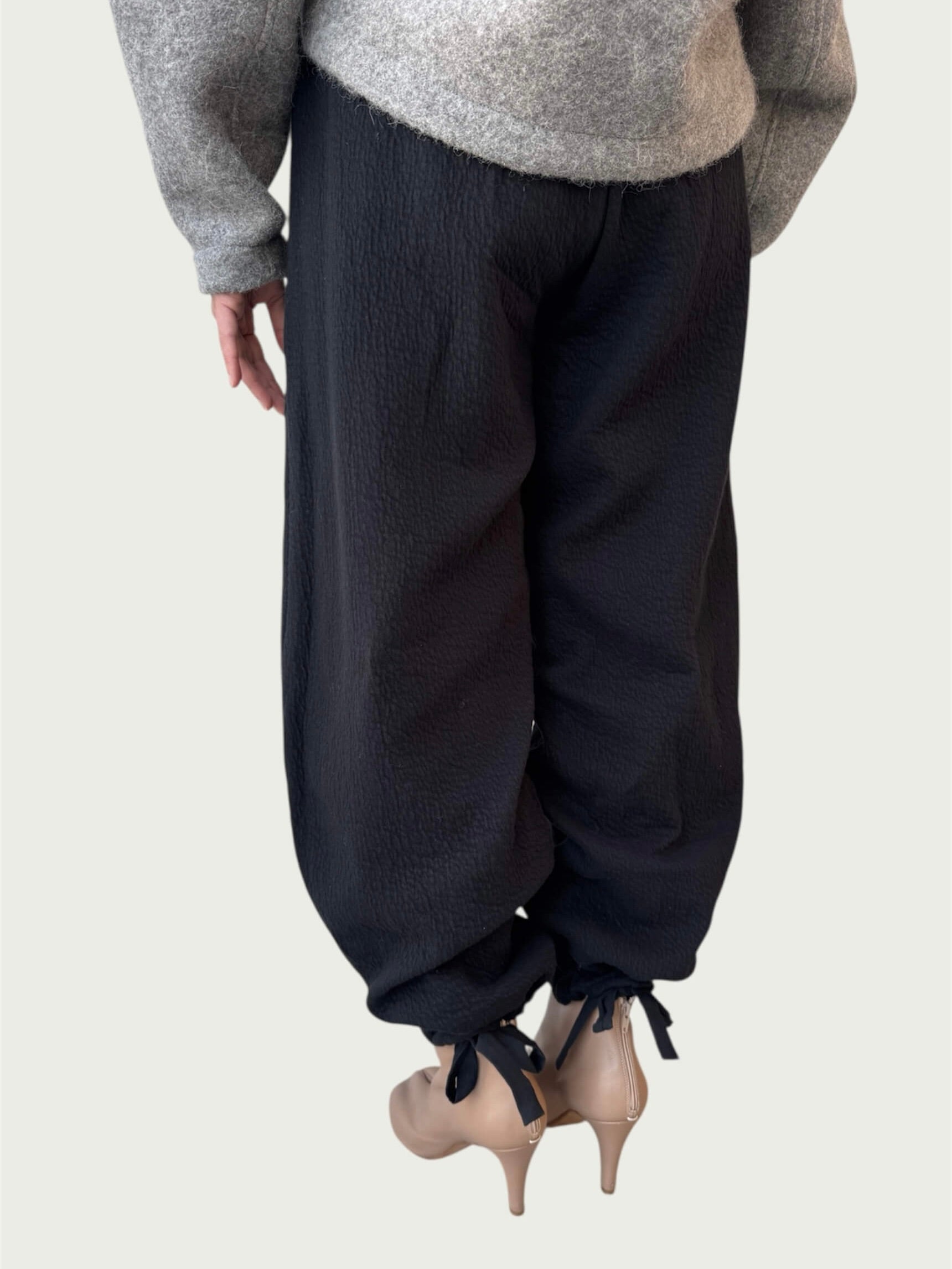 Organic Puffed Cotton Integral Balloon Pant in Black