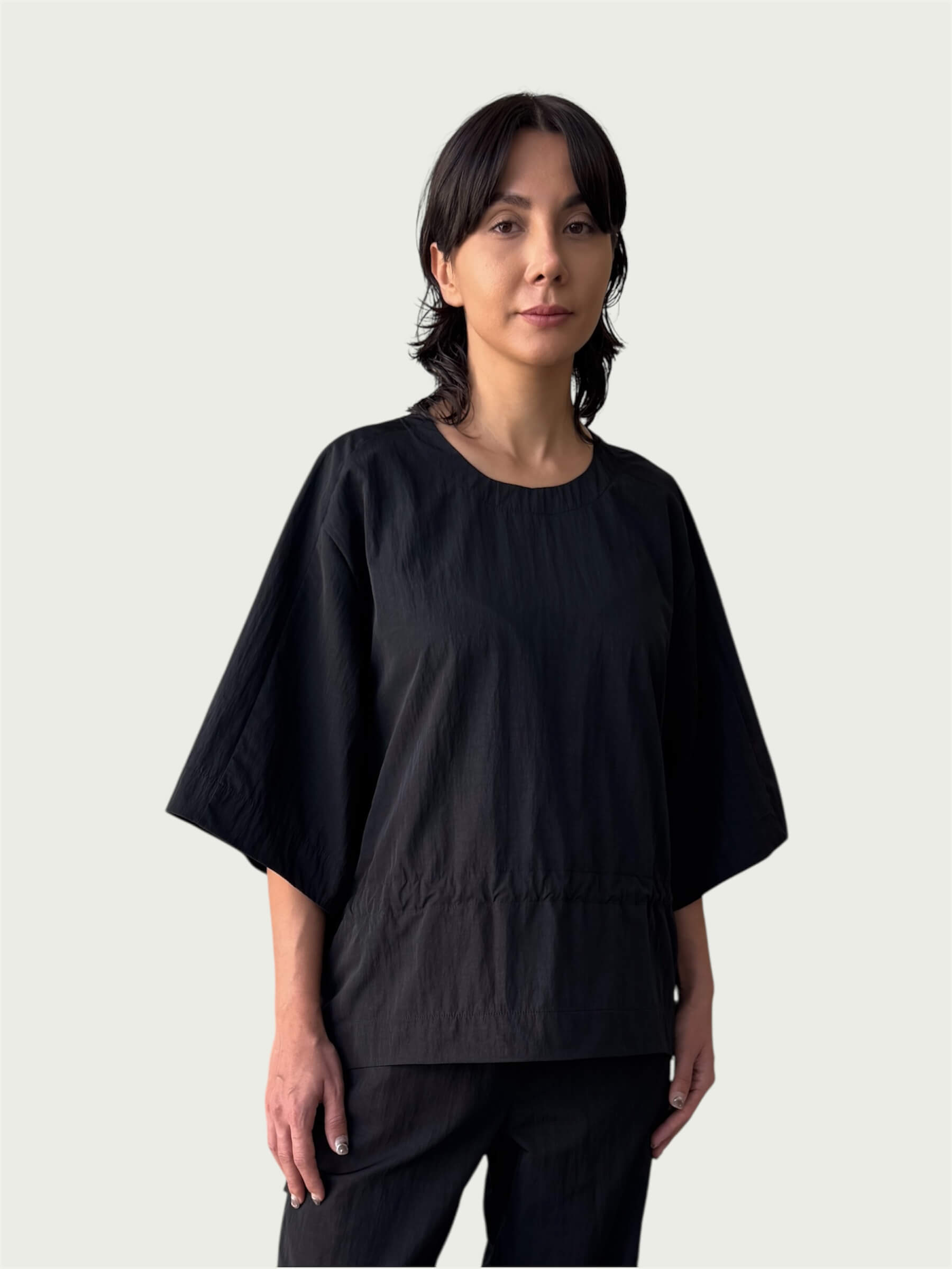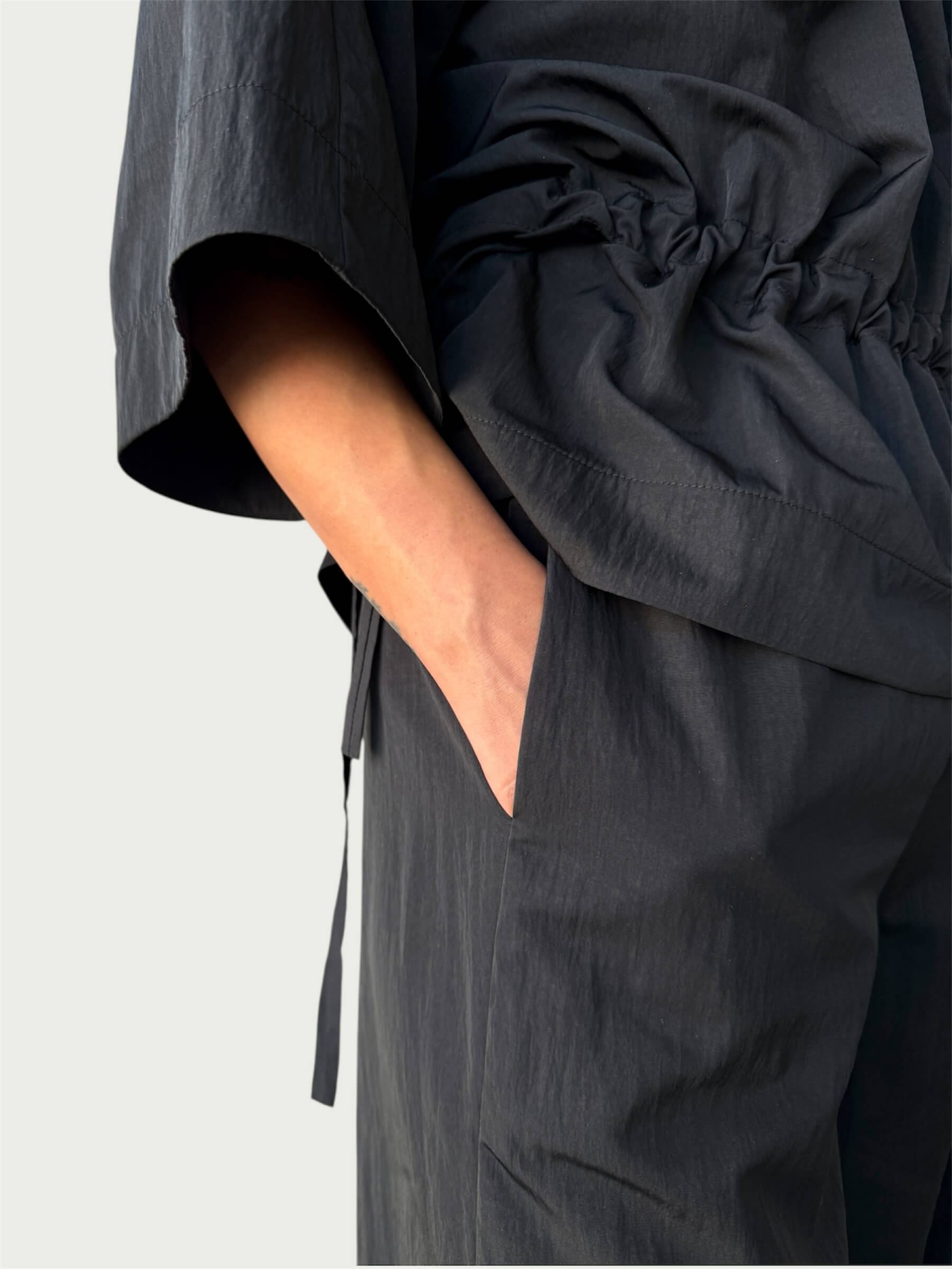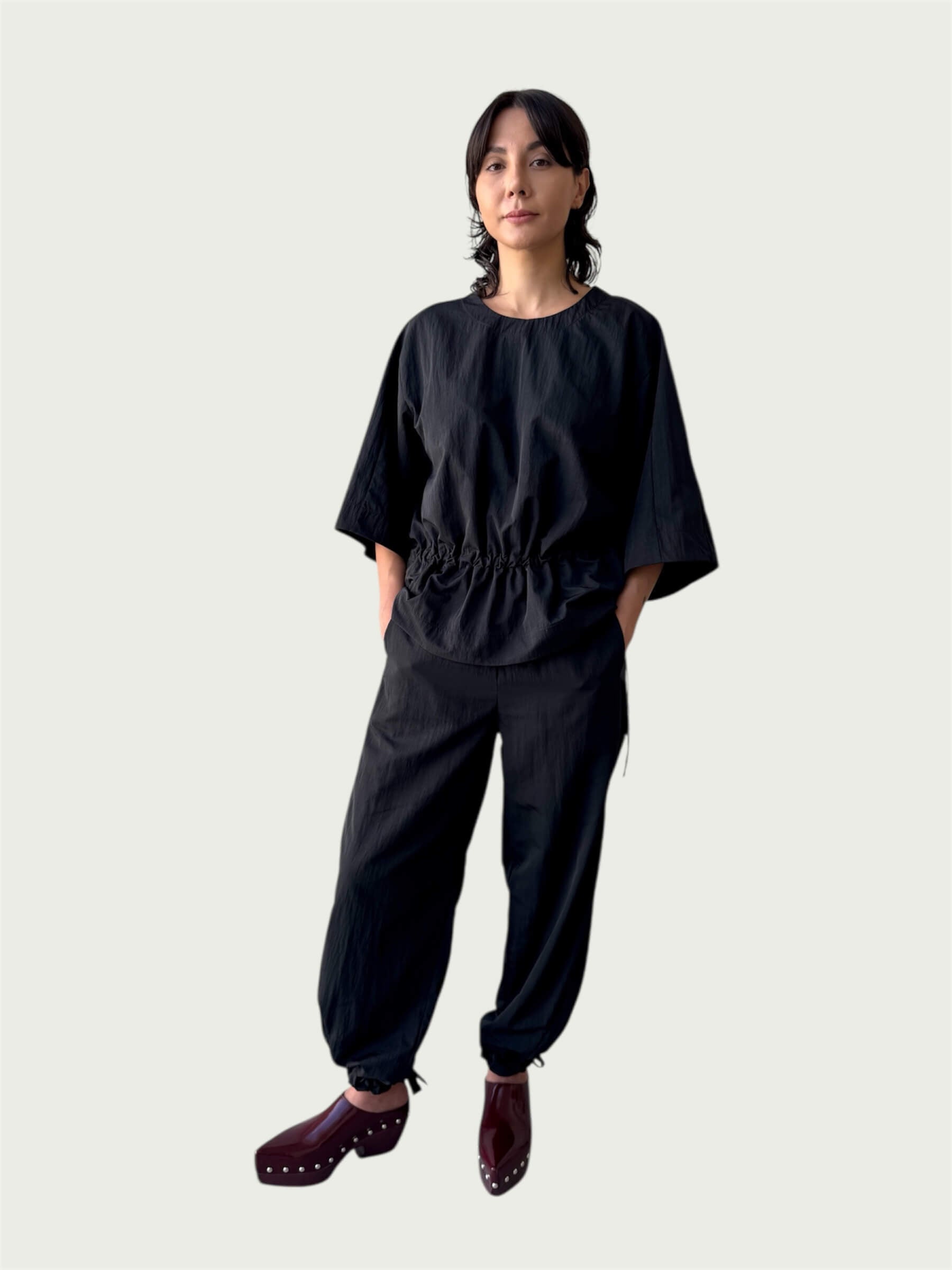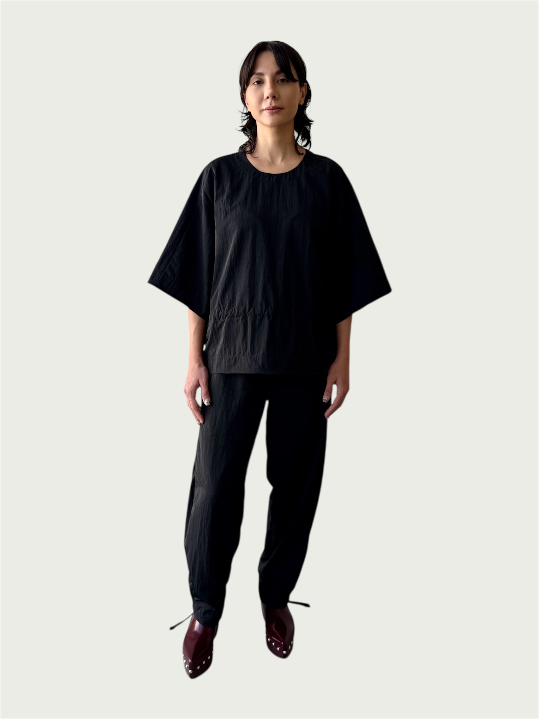 Organic Puffed Cotton Integral Balloon Pant in Black