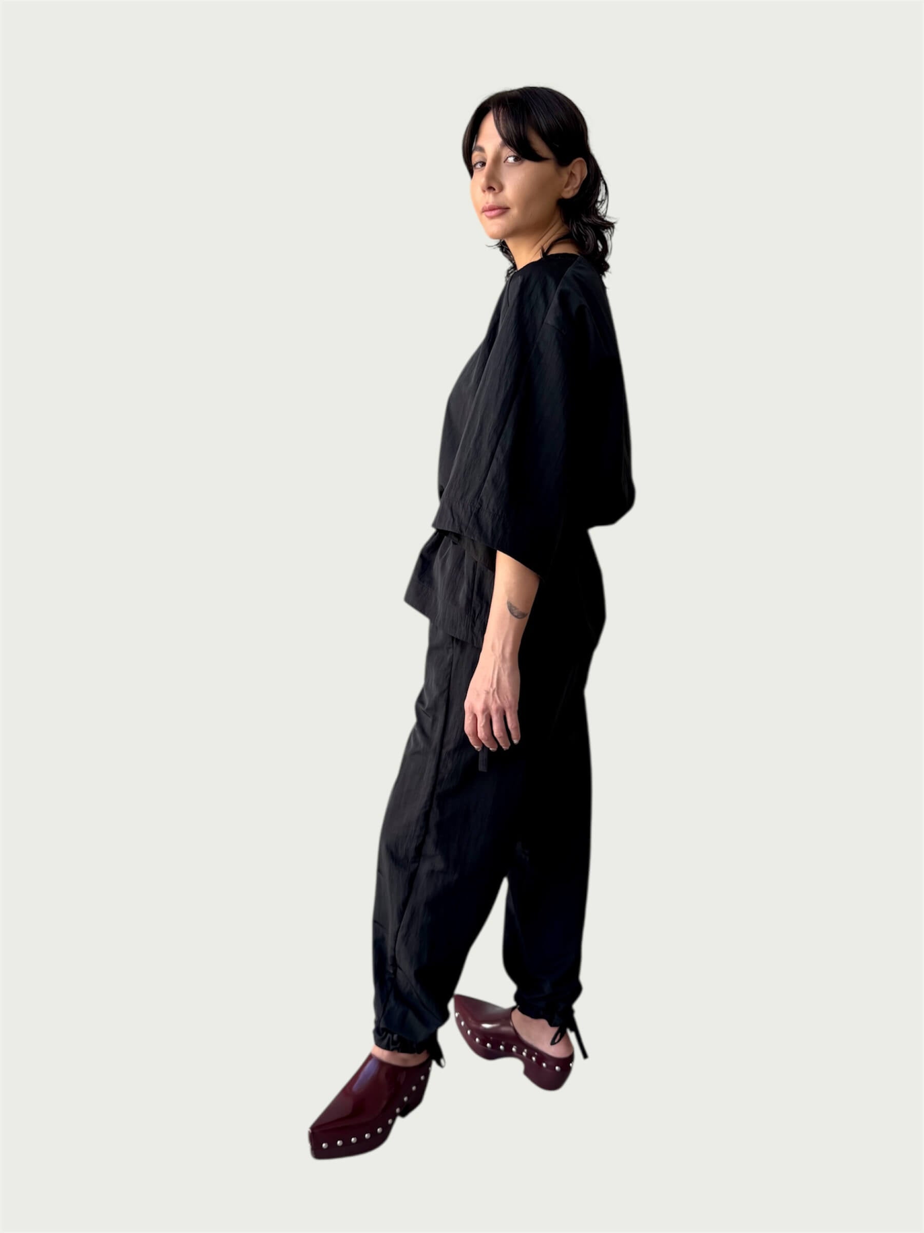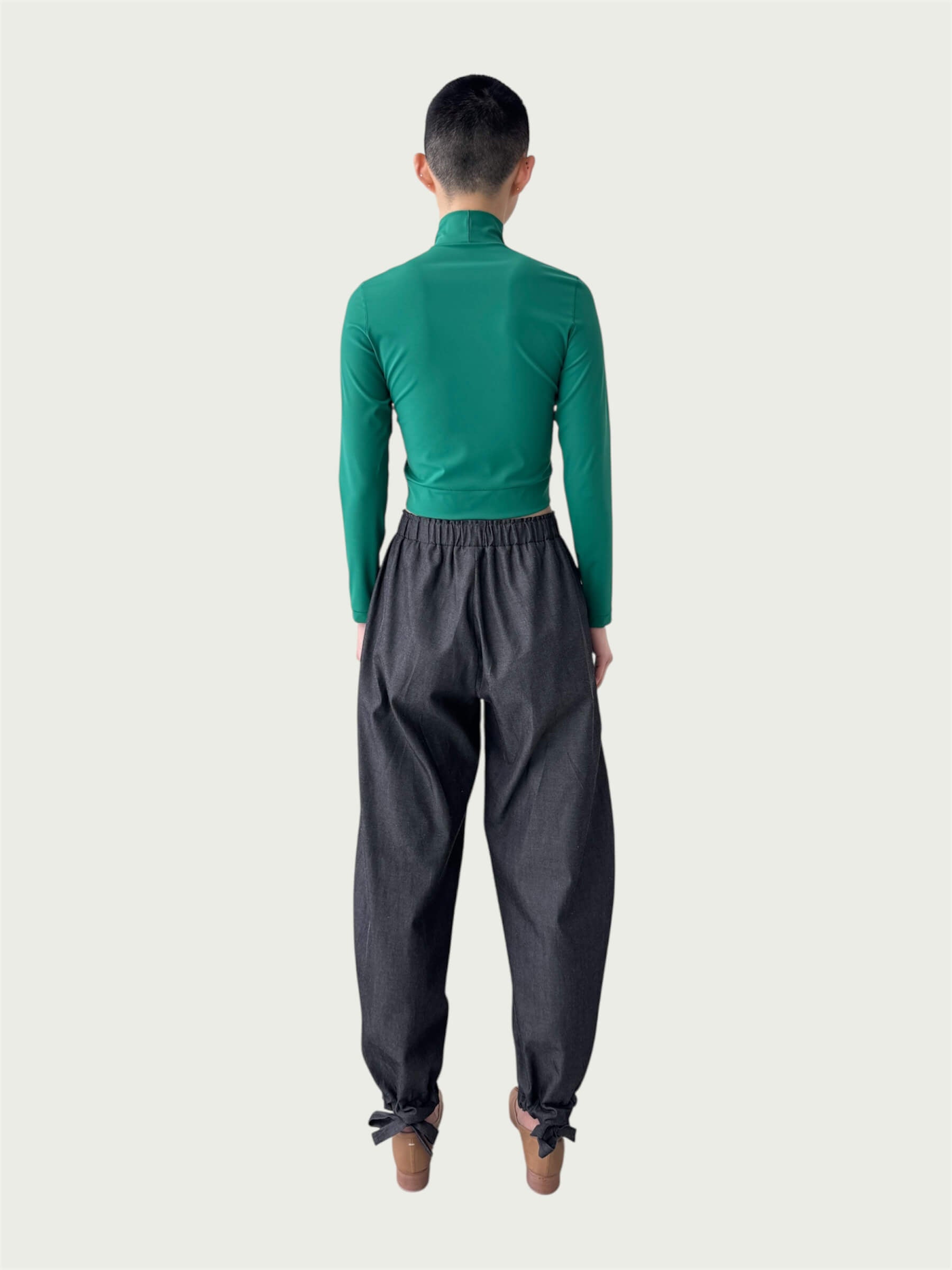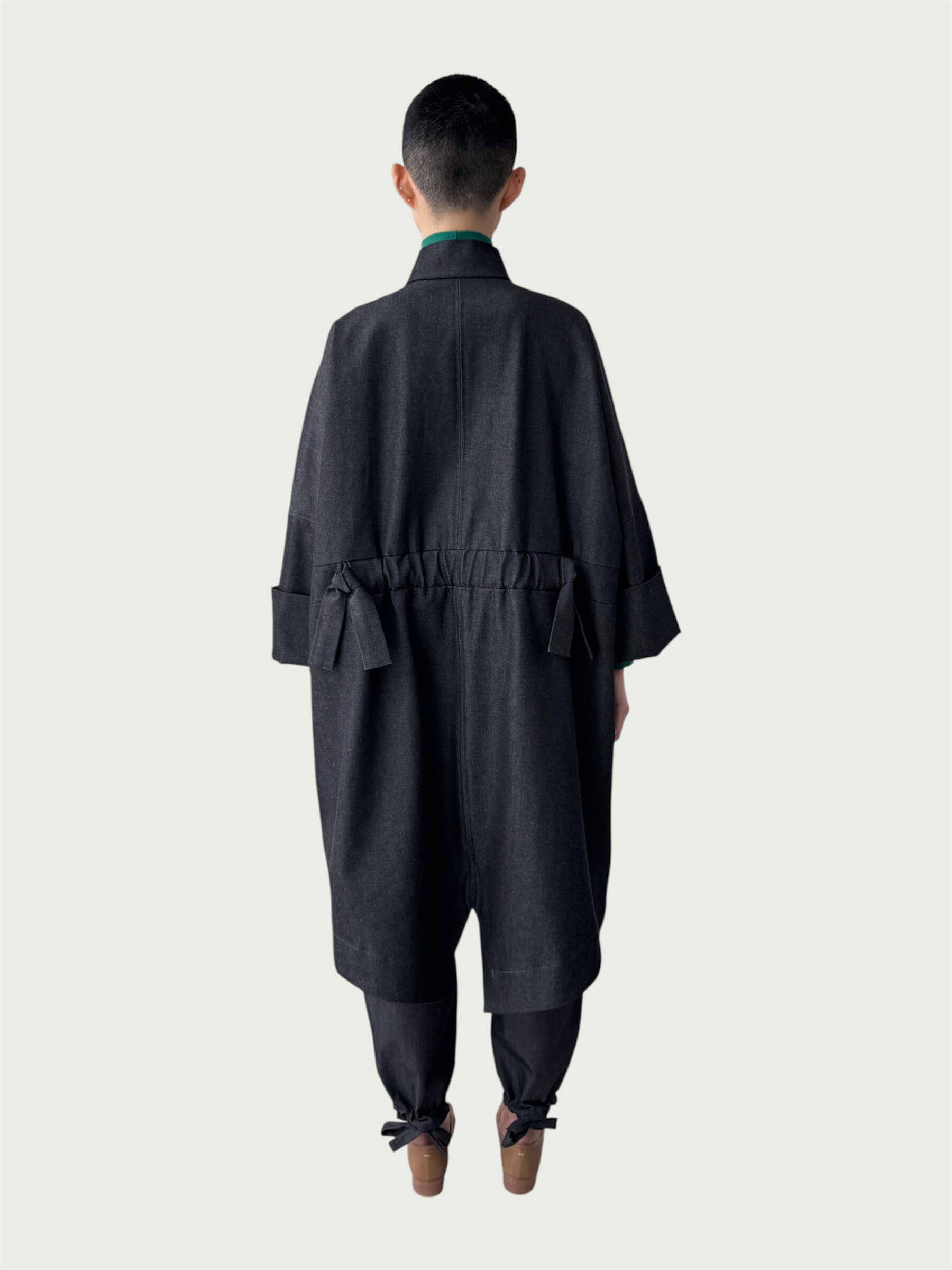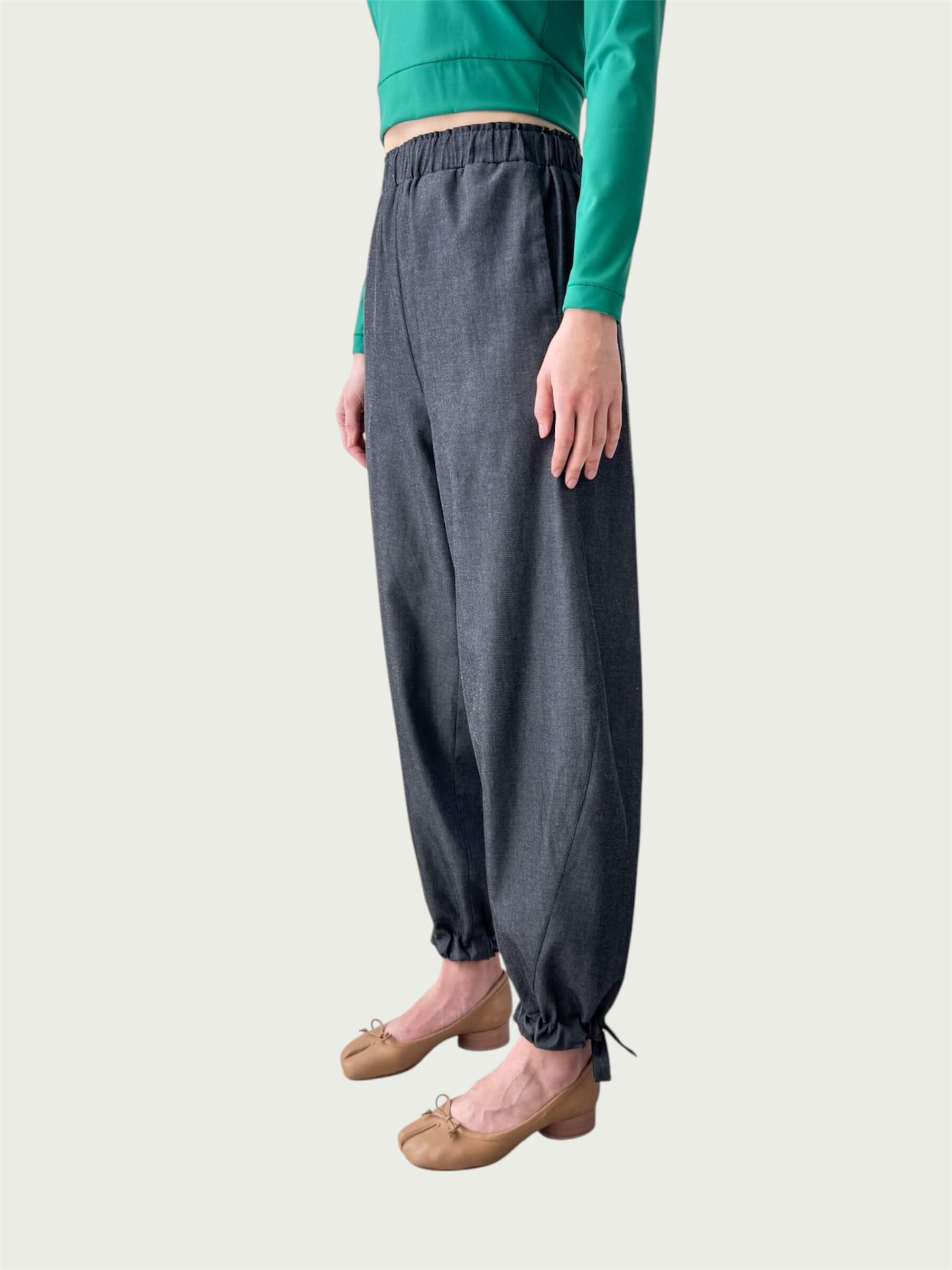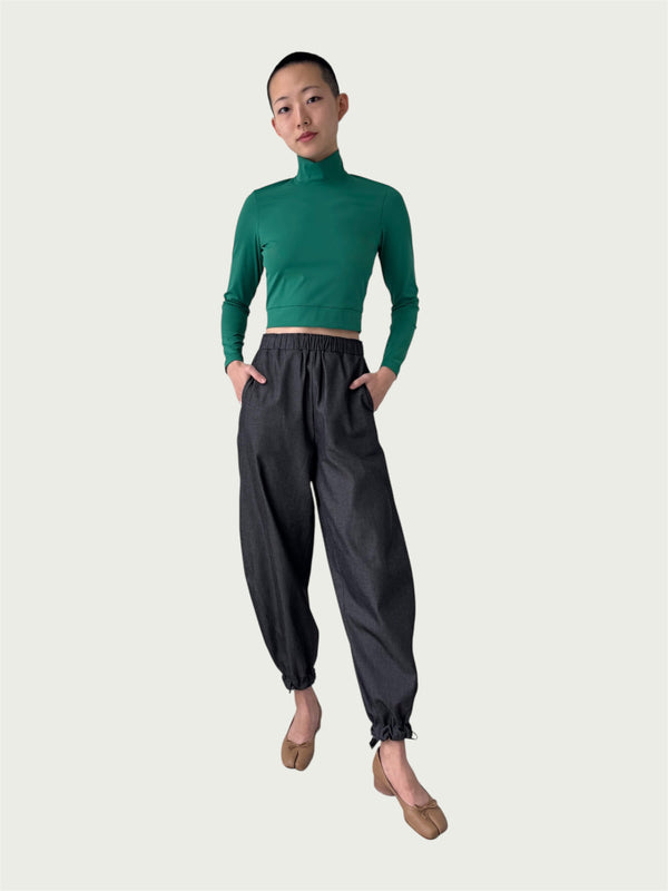 Japanese Denim Integral Balloon Pants in Quiet Black