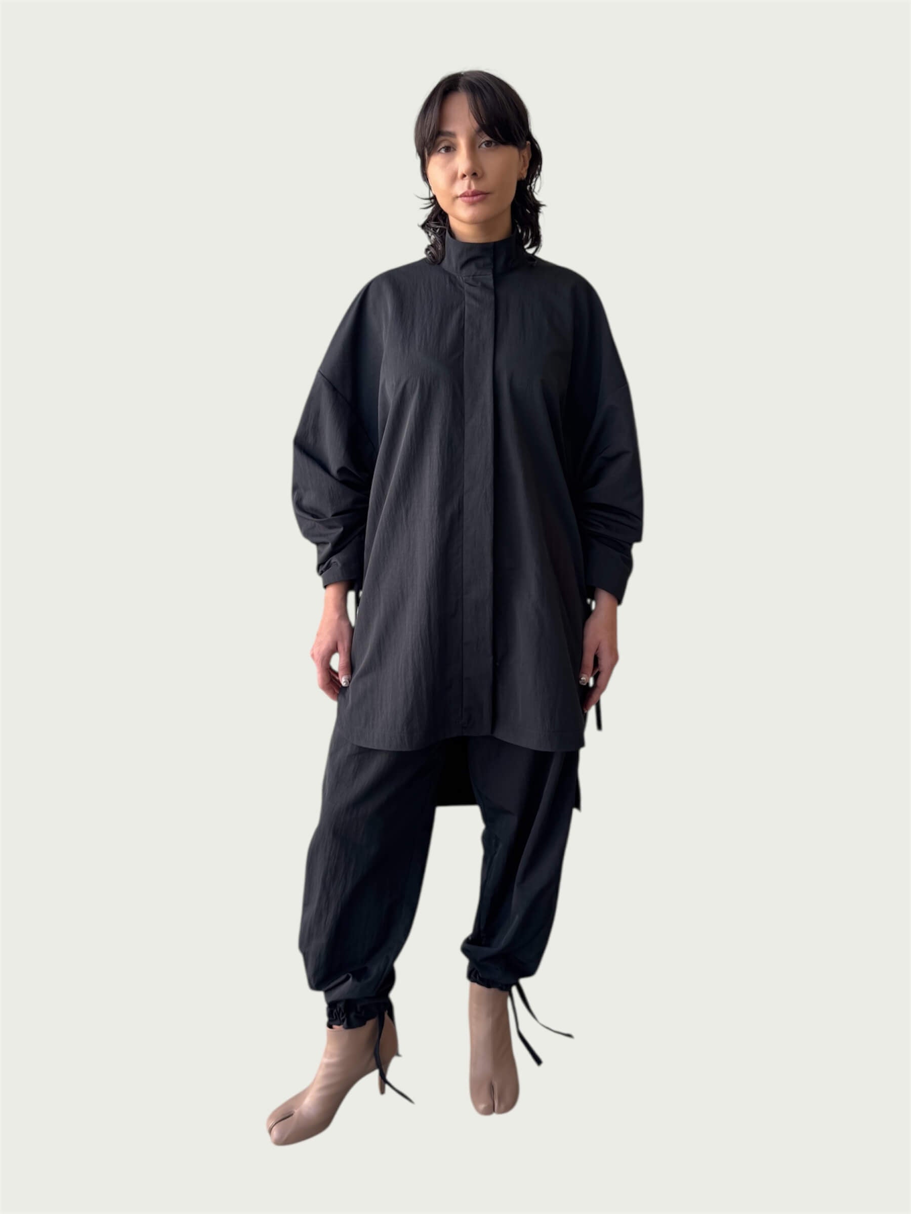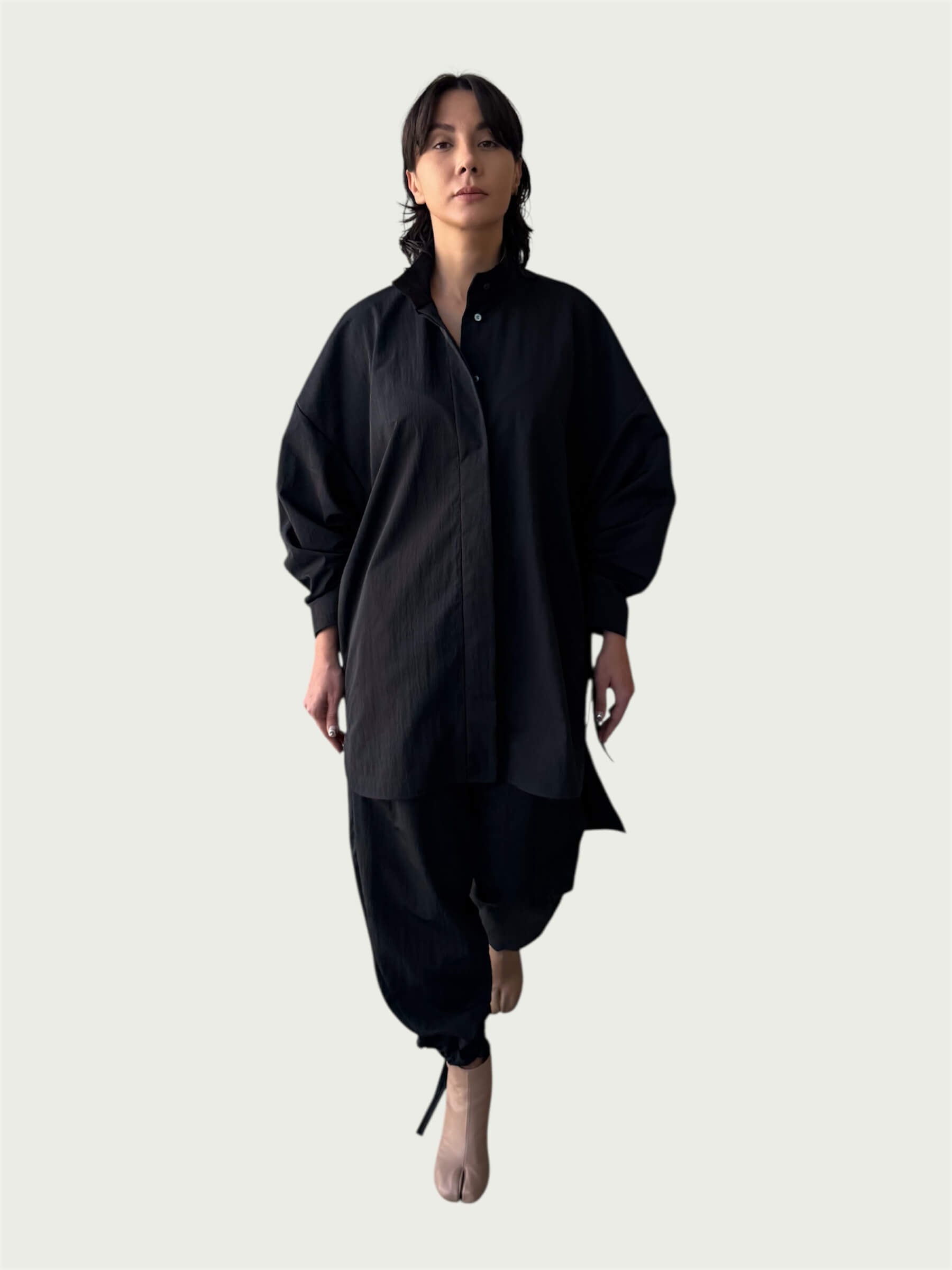 Air Loom Integral Button Up Long Shirt in Black