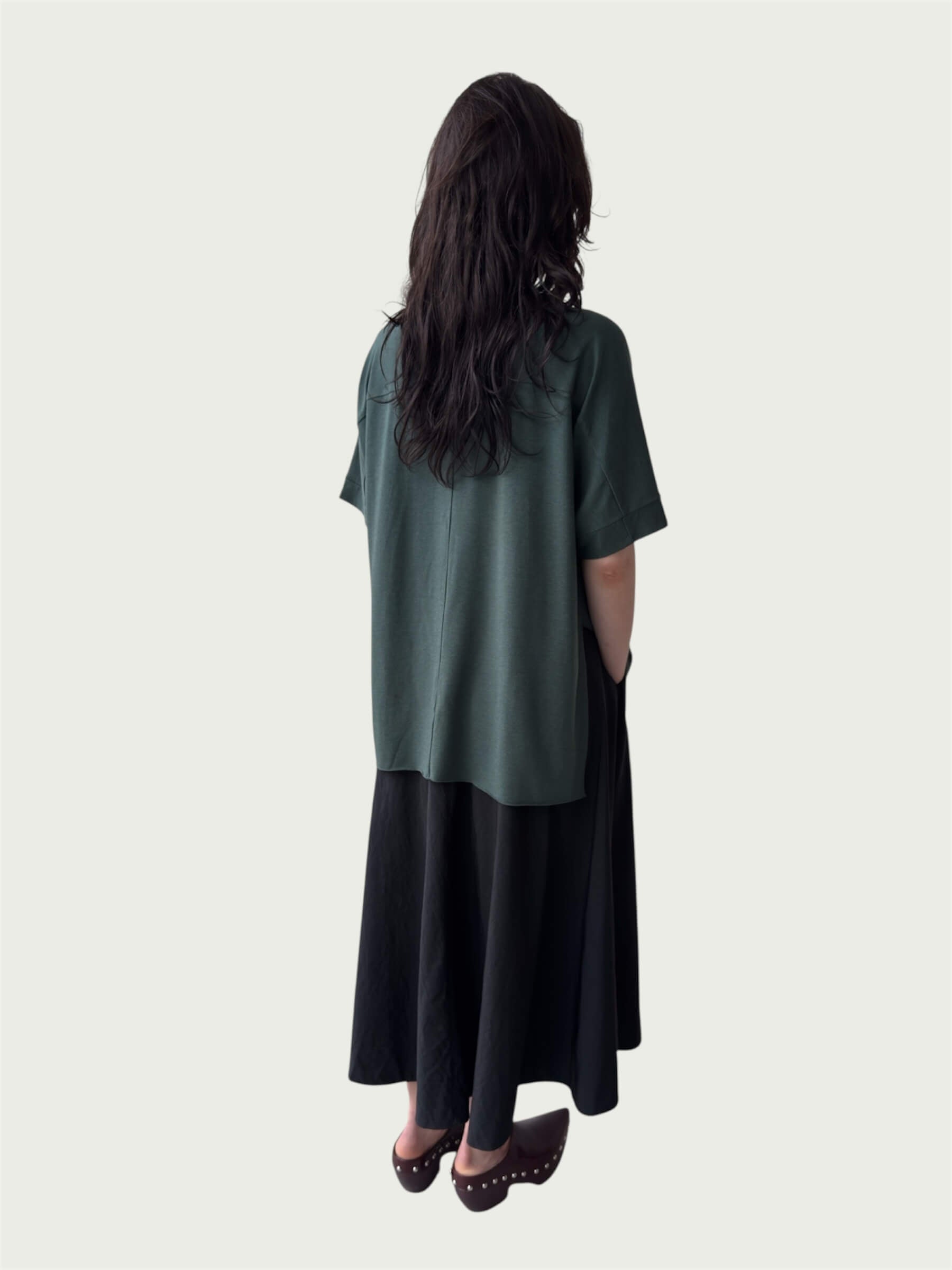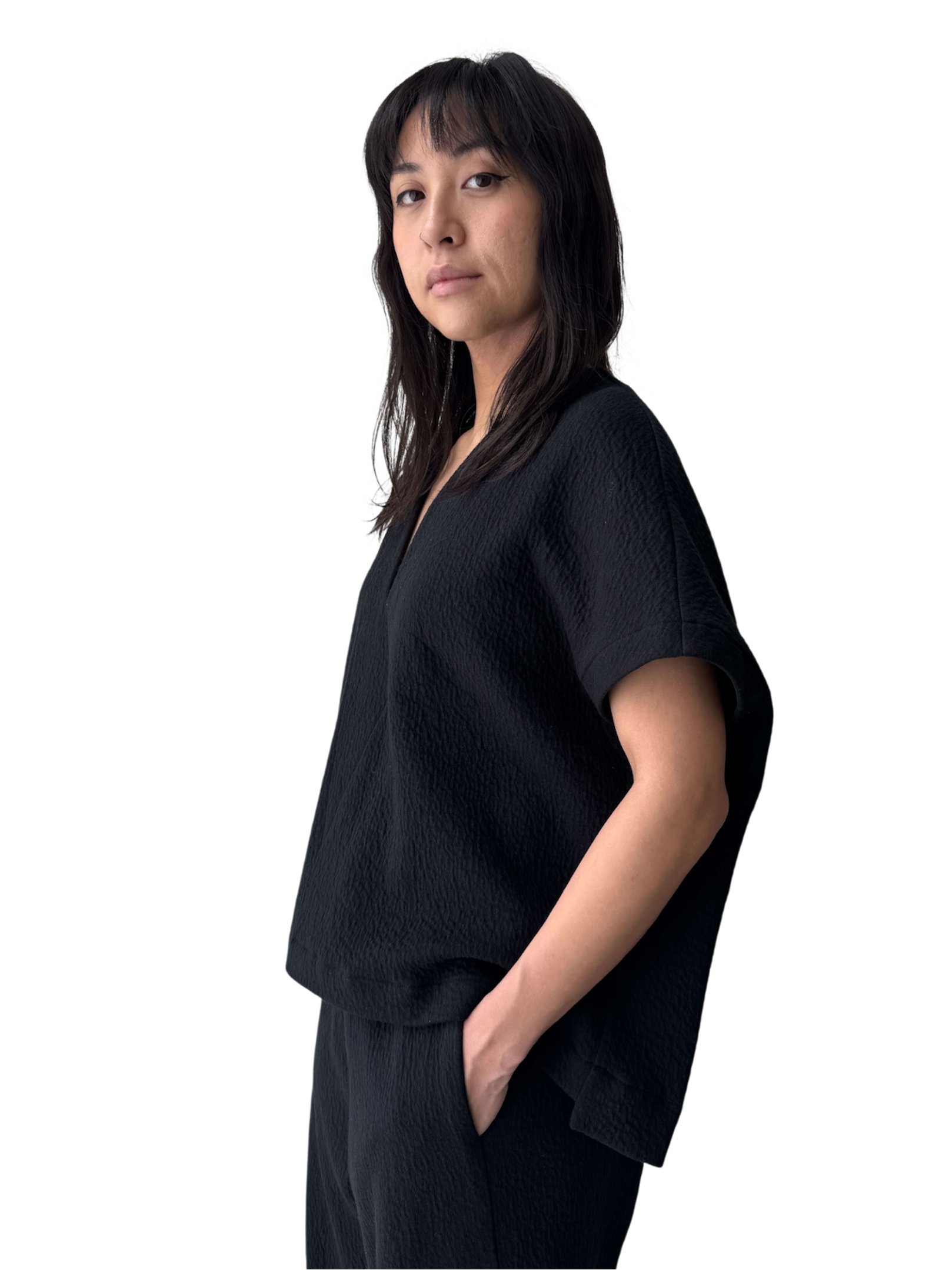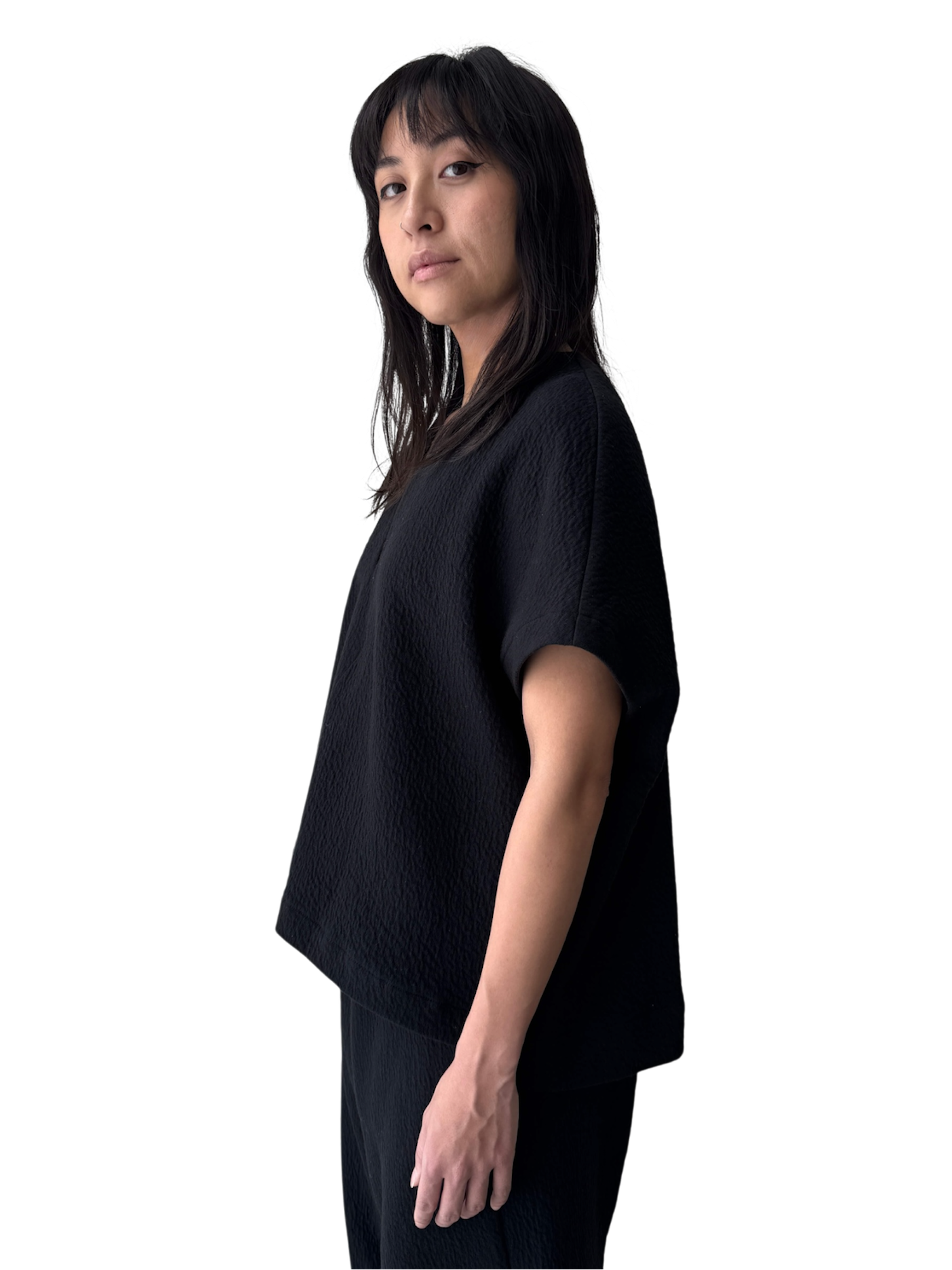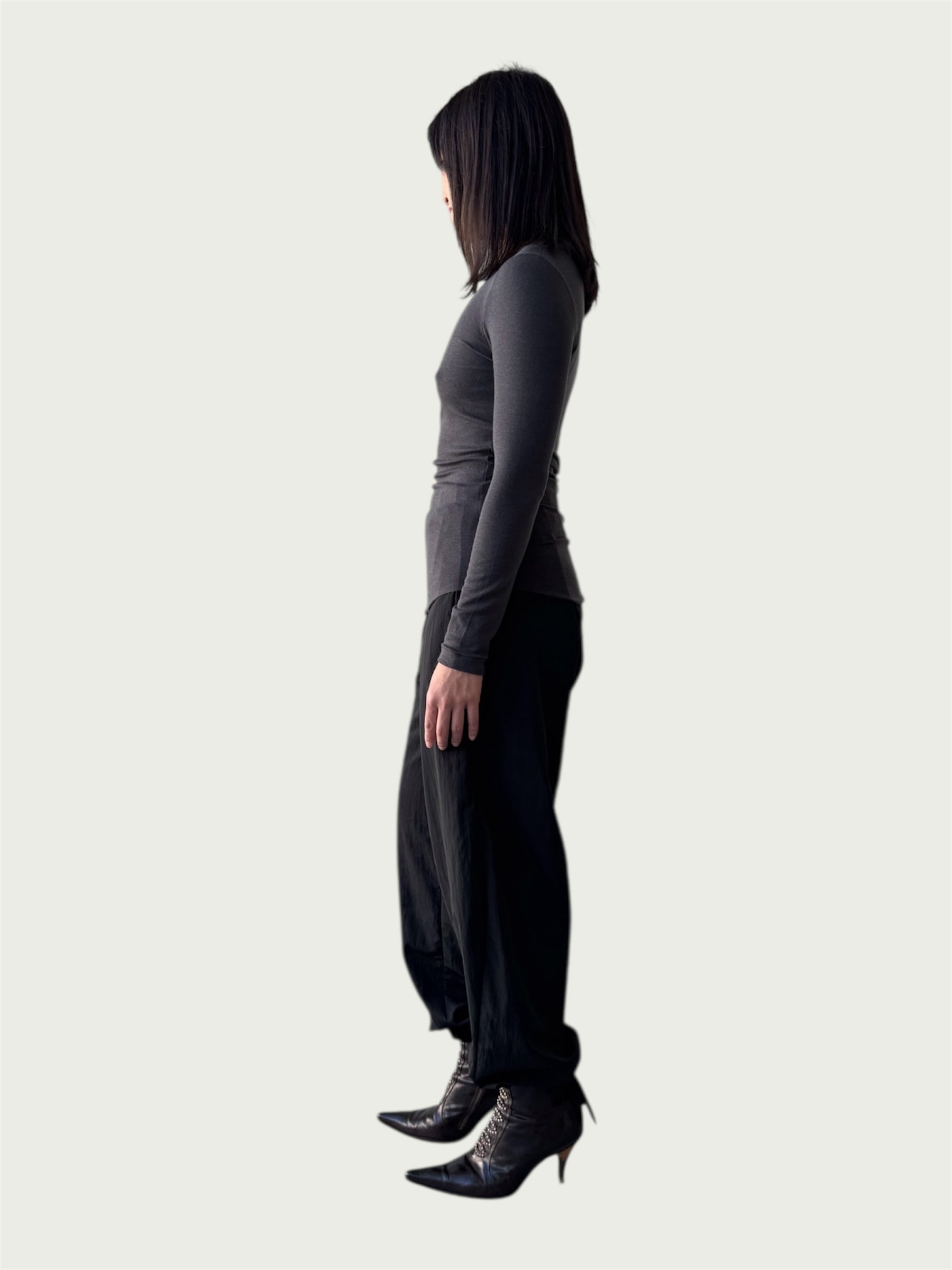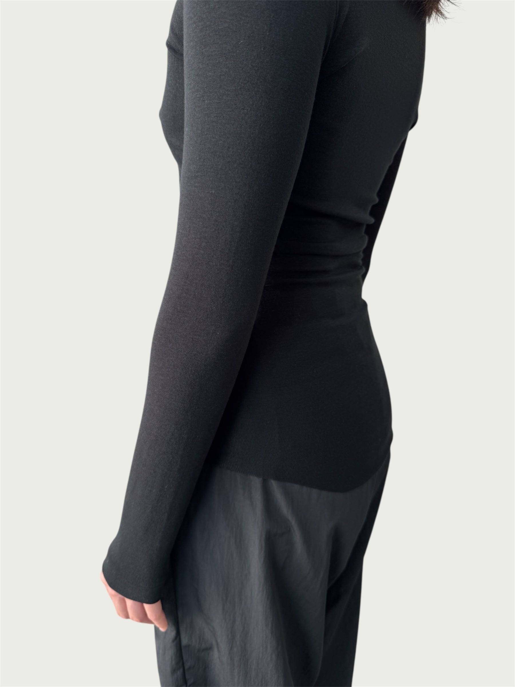 Ribbed Mock Neck Shirttail Top in Kohl Black