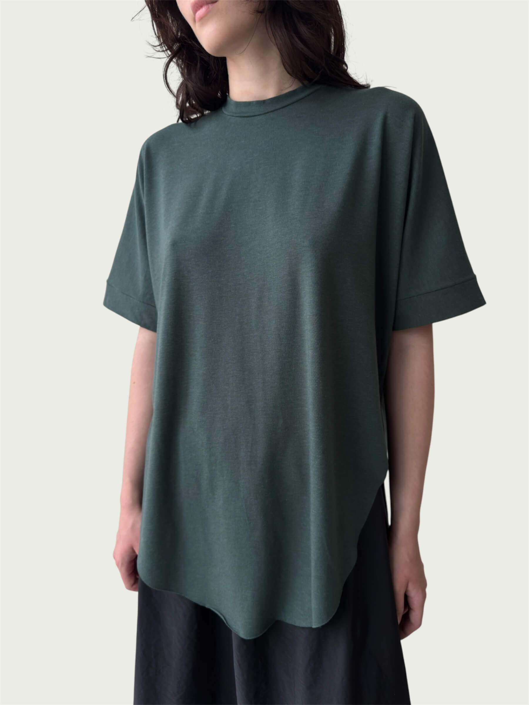 Ribbed Mock Neck Shirttail Top in Silver Pine