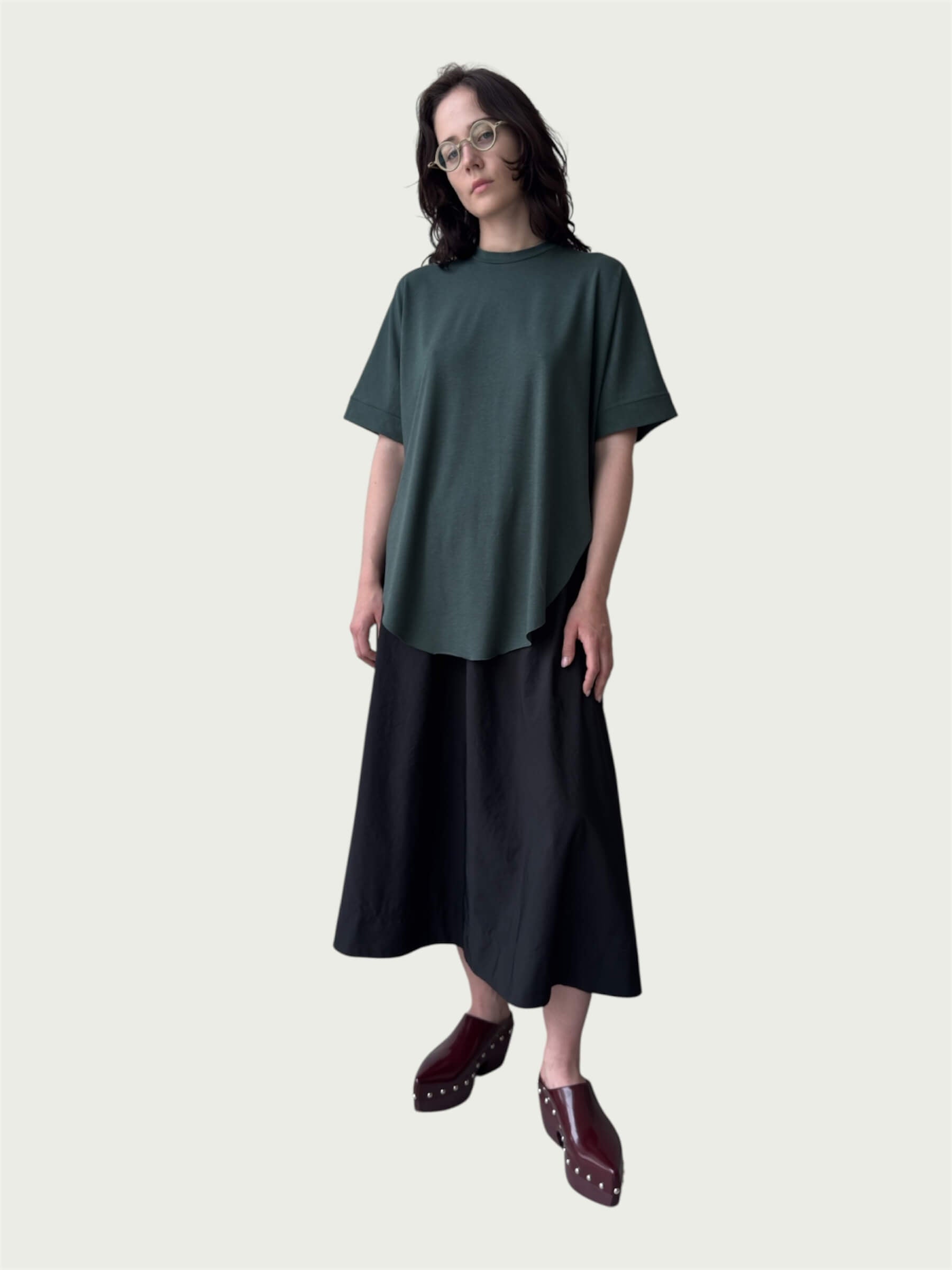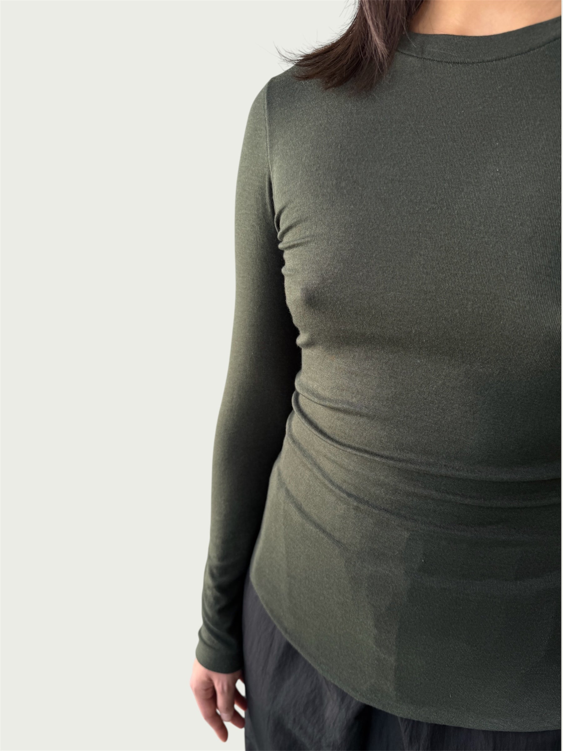 Wool Jewel Neck Long Sleeve Shirt in Shaded Evergreen