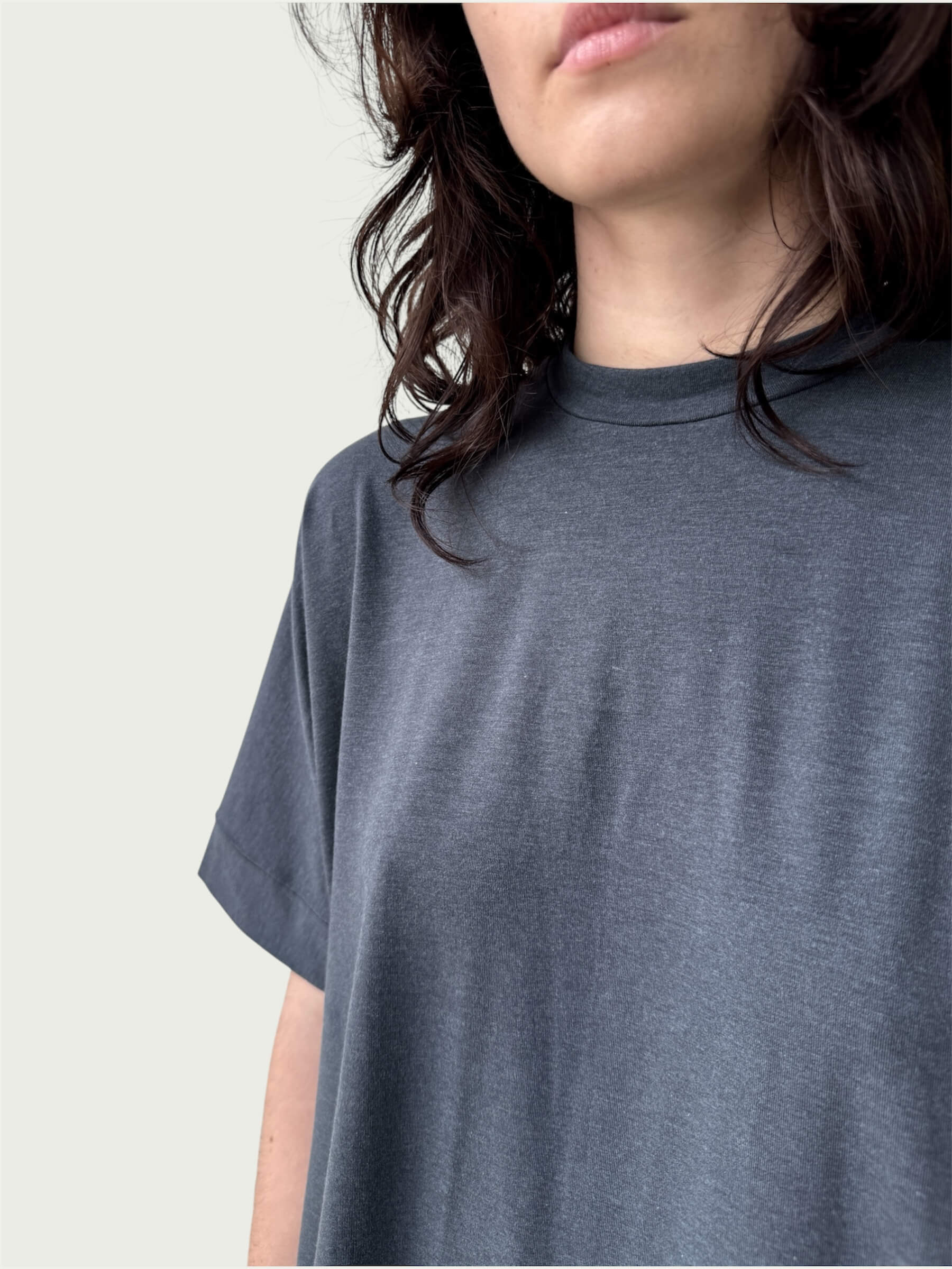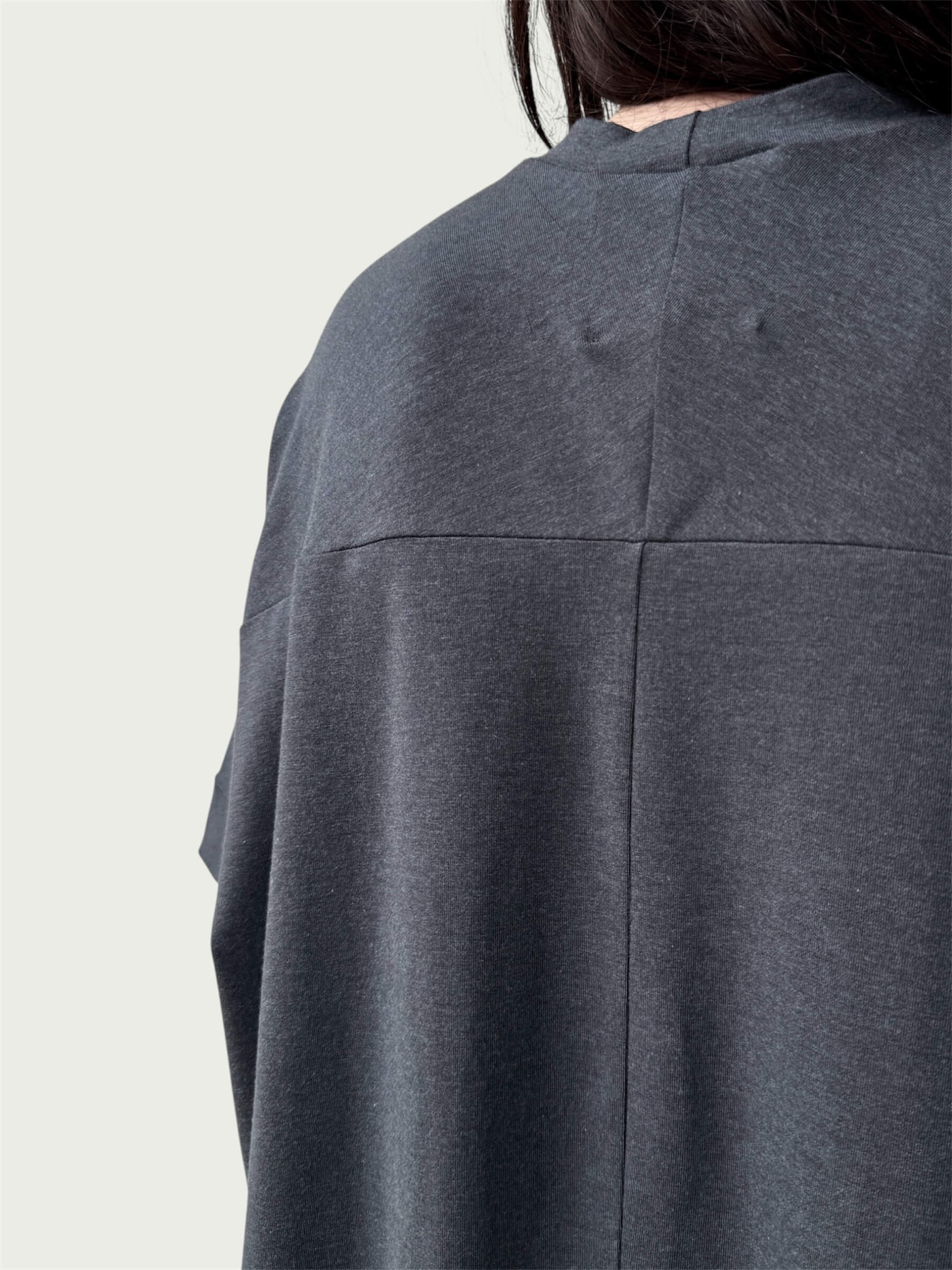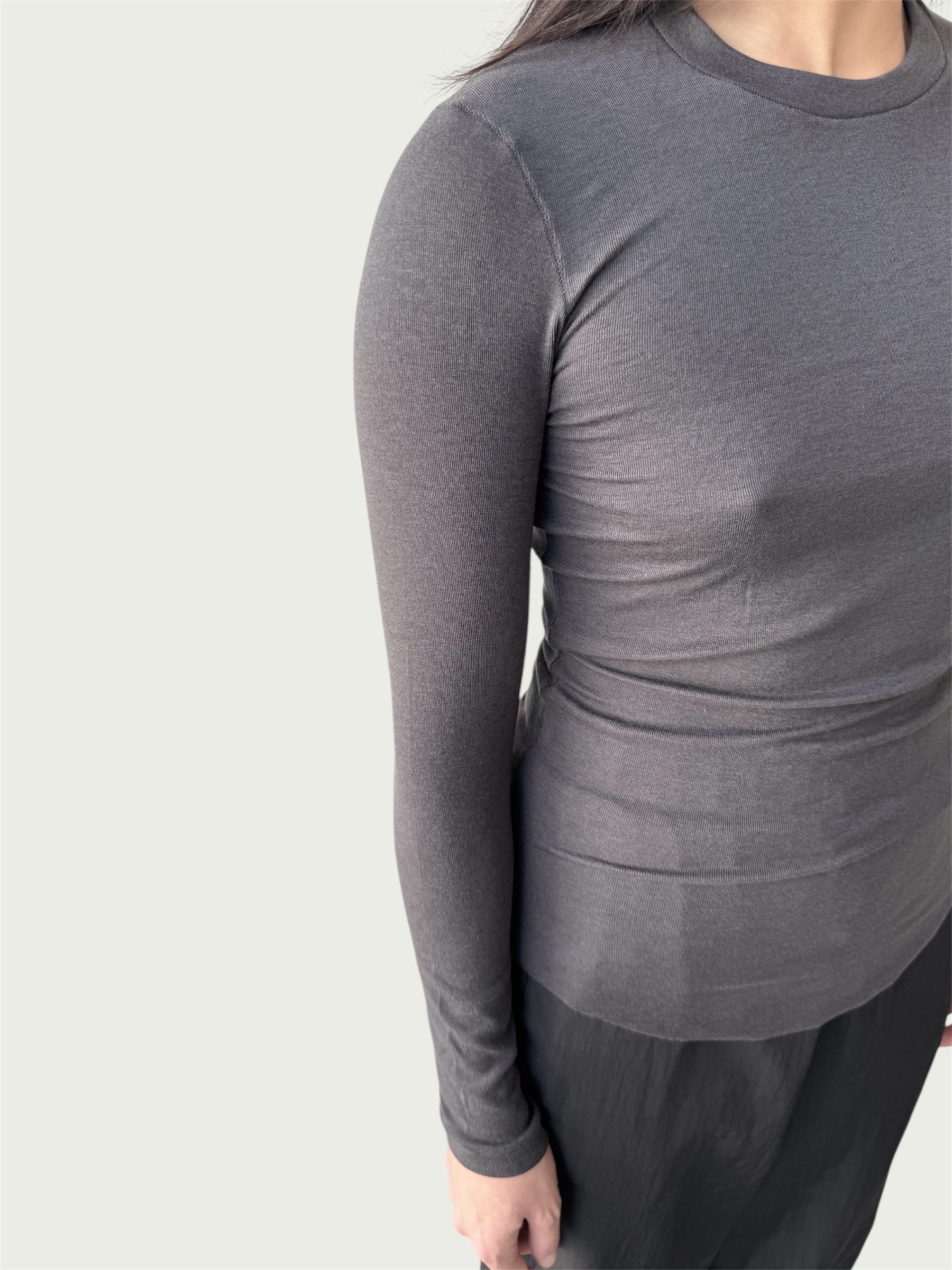 Wool Jewel Neck Long Sleeve Shirt in Shadow Grey