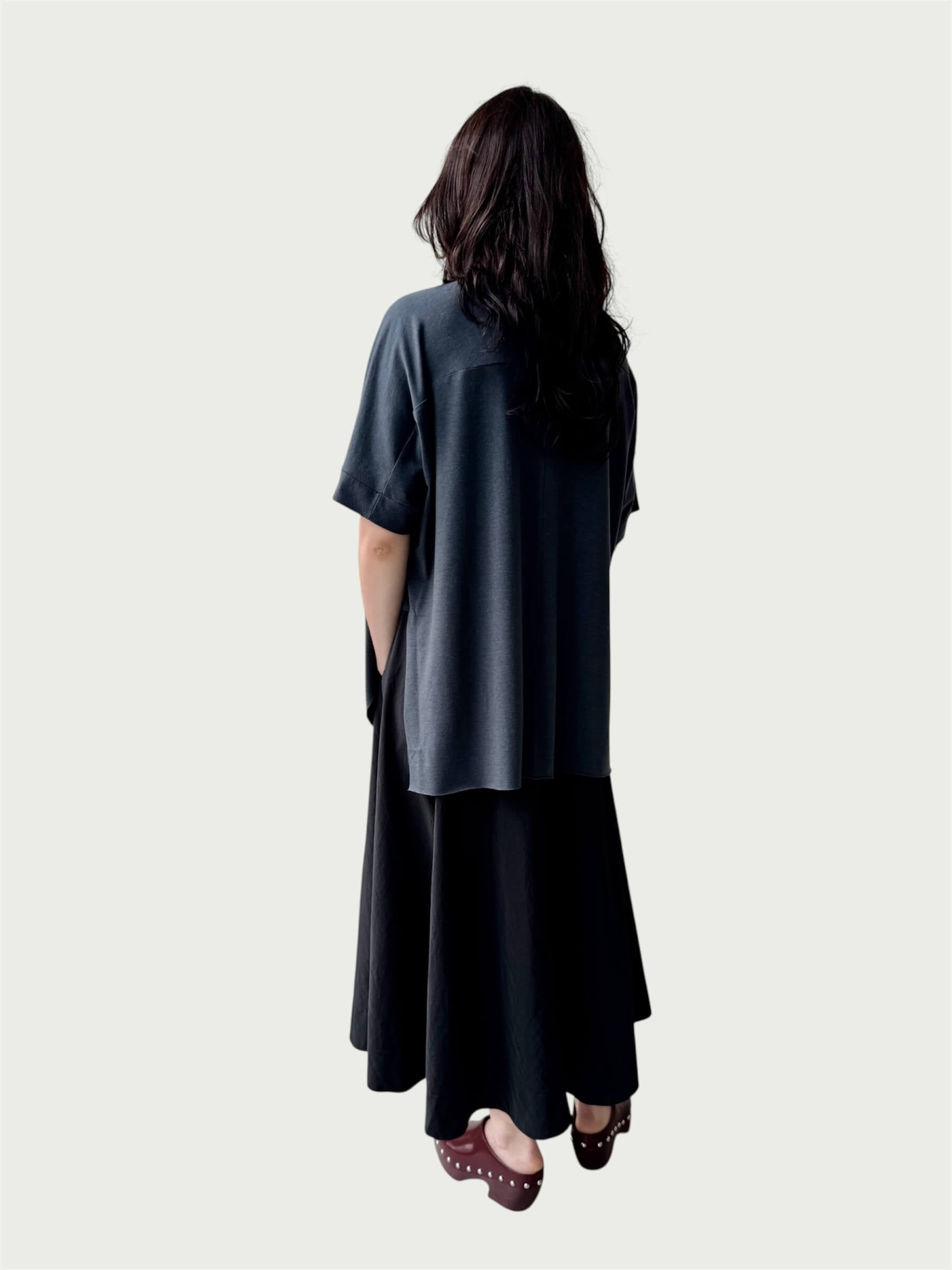Japanese Denim Integral Button Up Long Shirt in Quiet Black