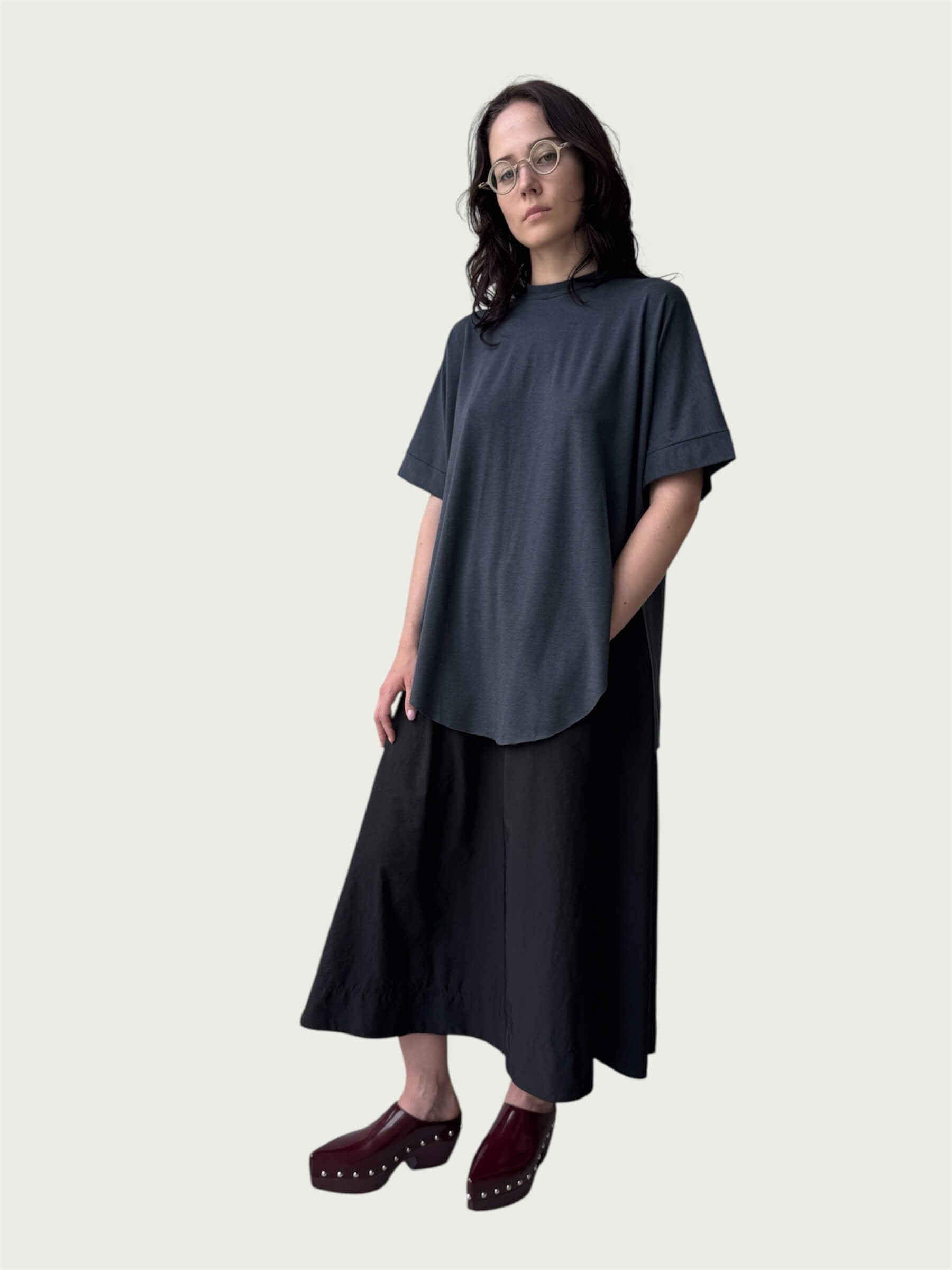 Japanese Denim Integral Button Up Long Shirt in Wet Cement