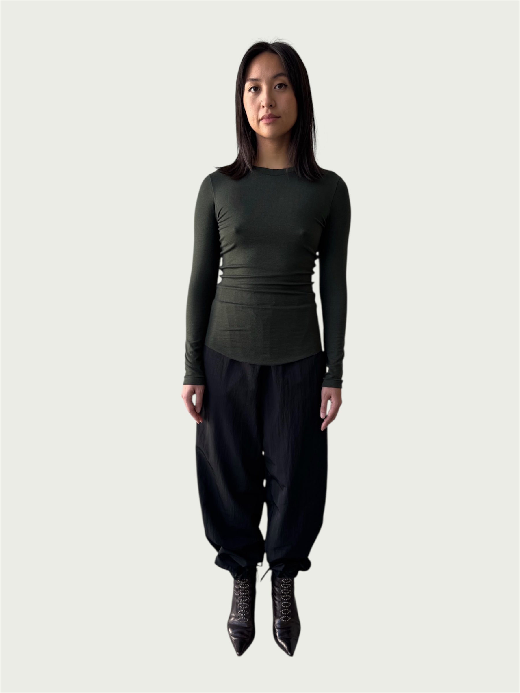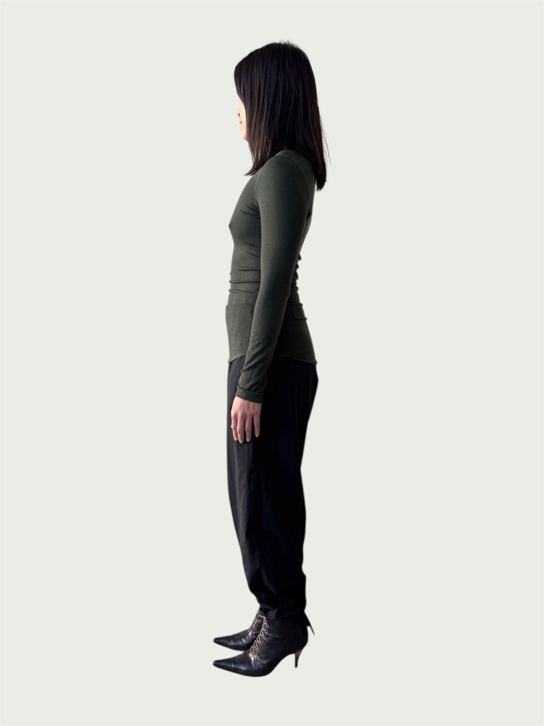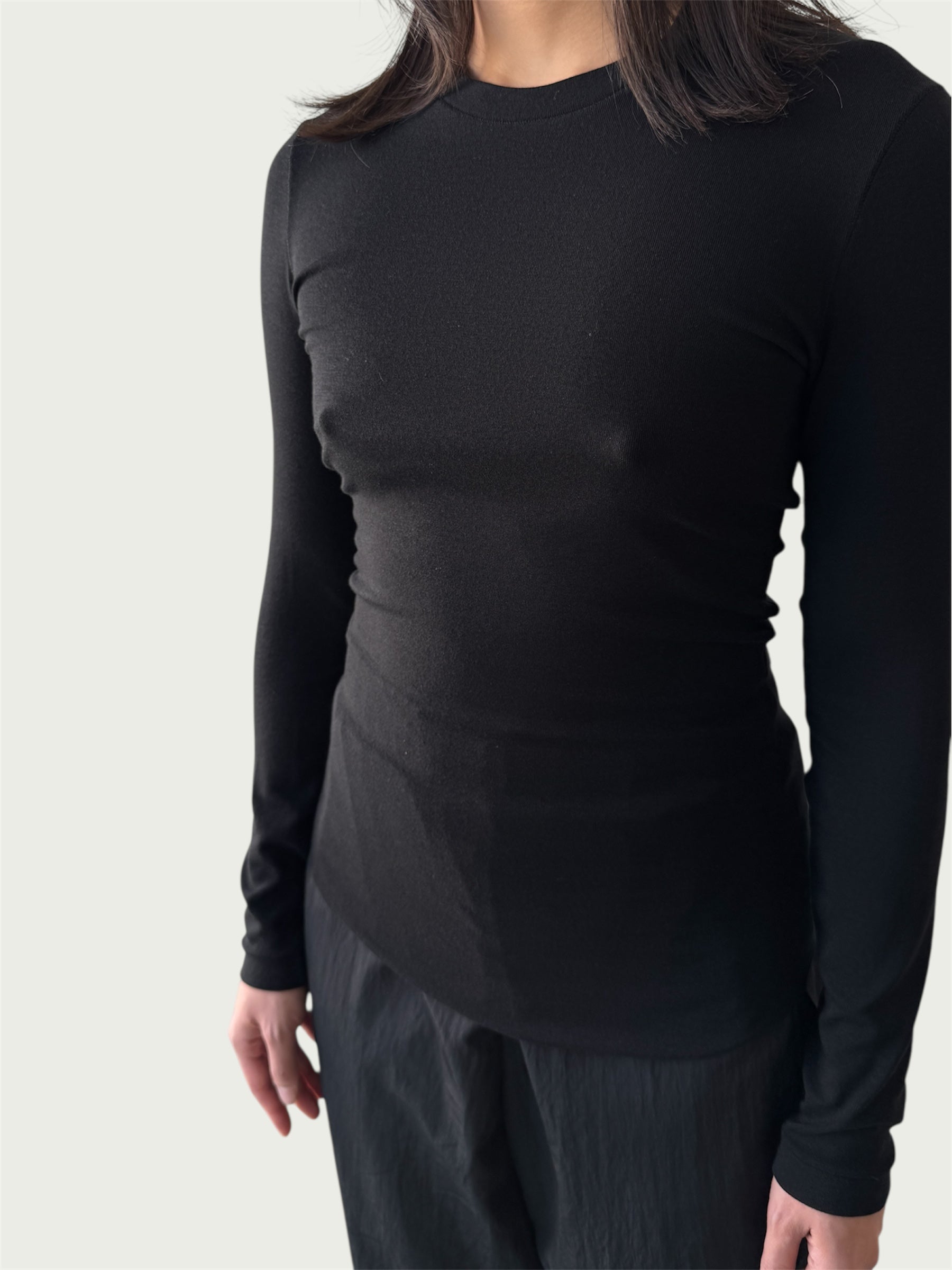 Wool Jewel Neck Long Sleeve Shirt in Khol Black