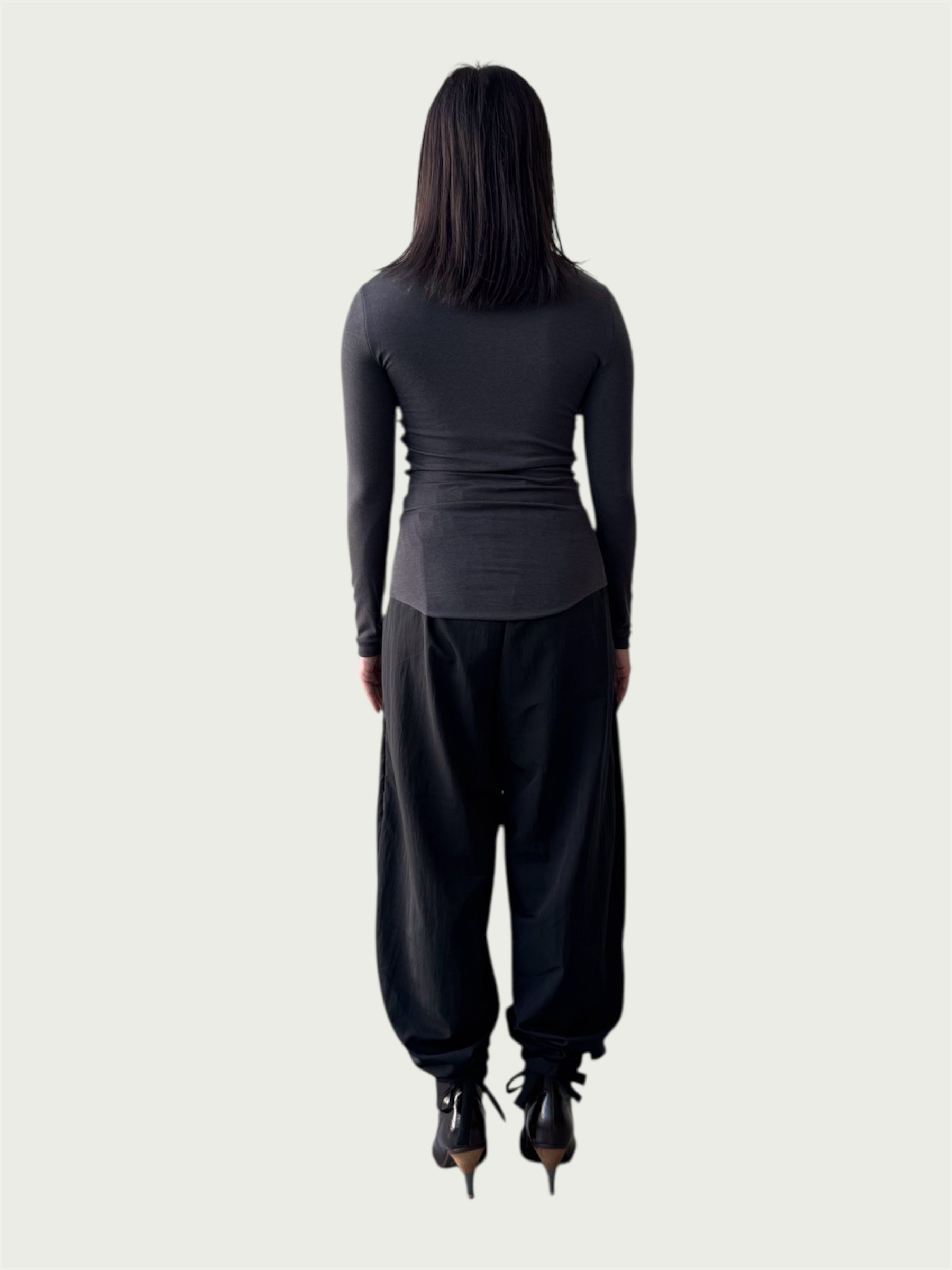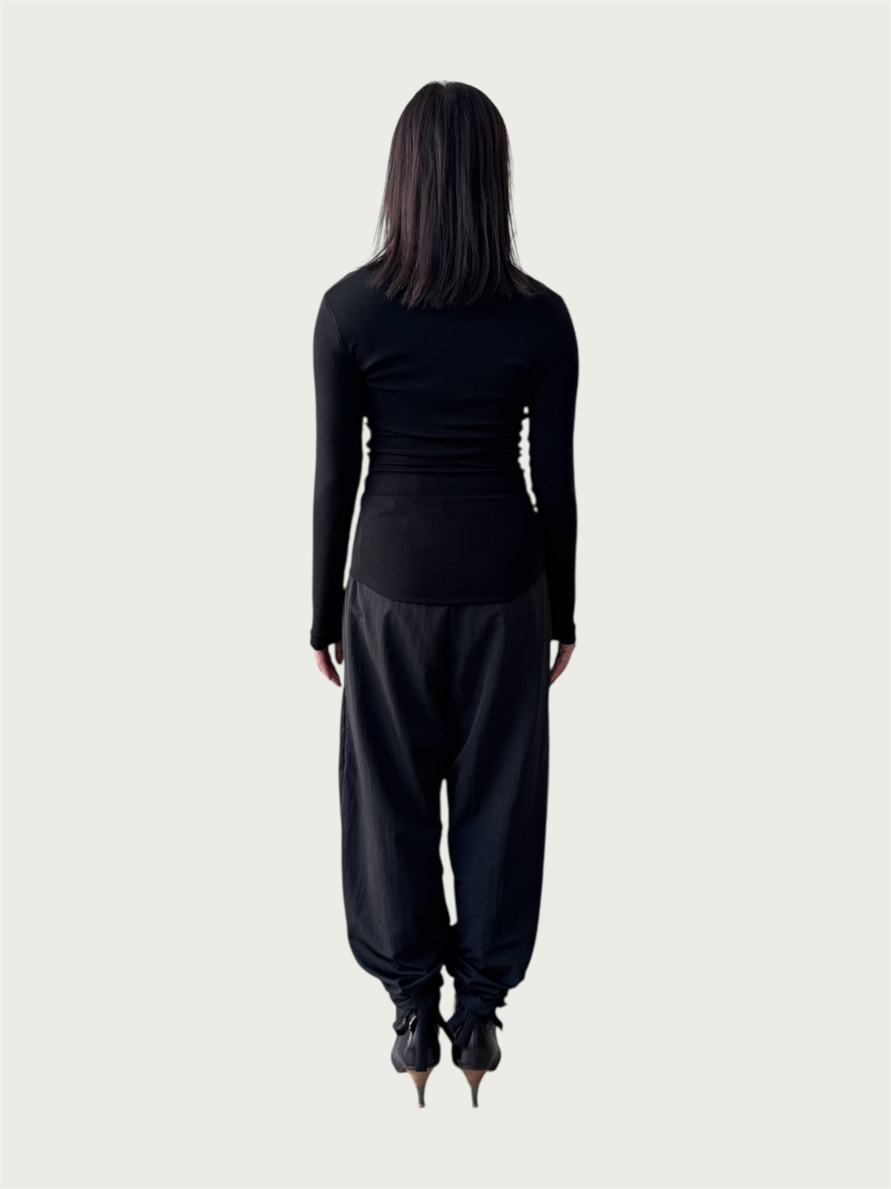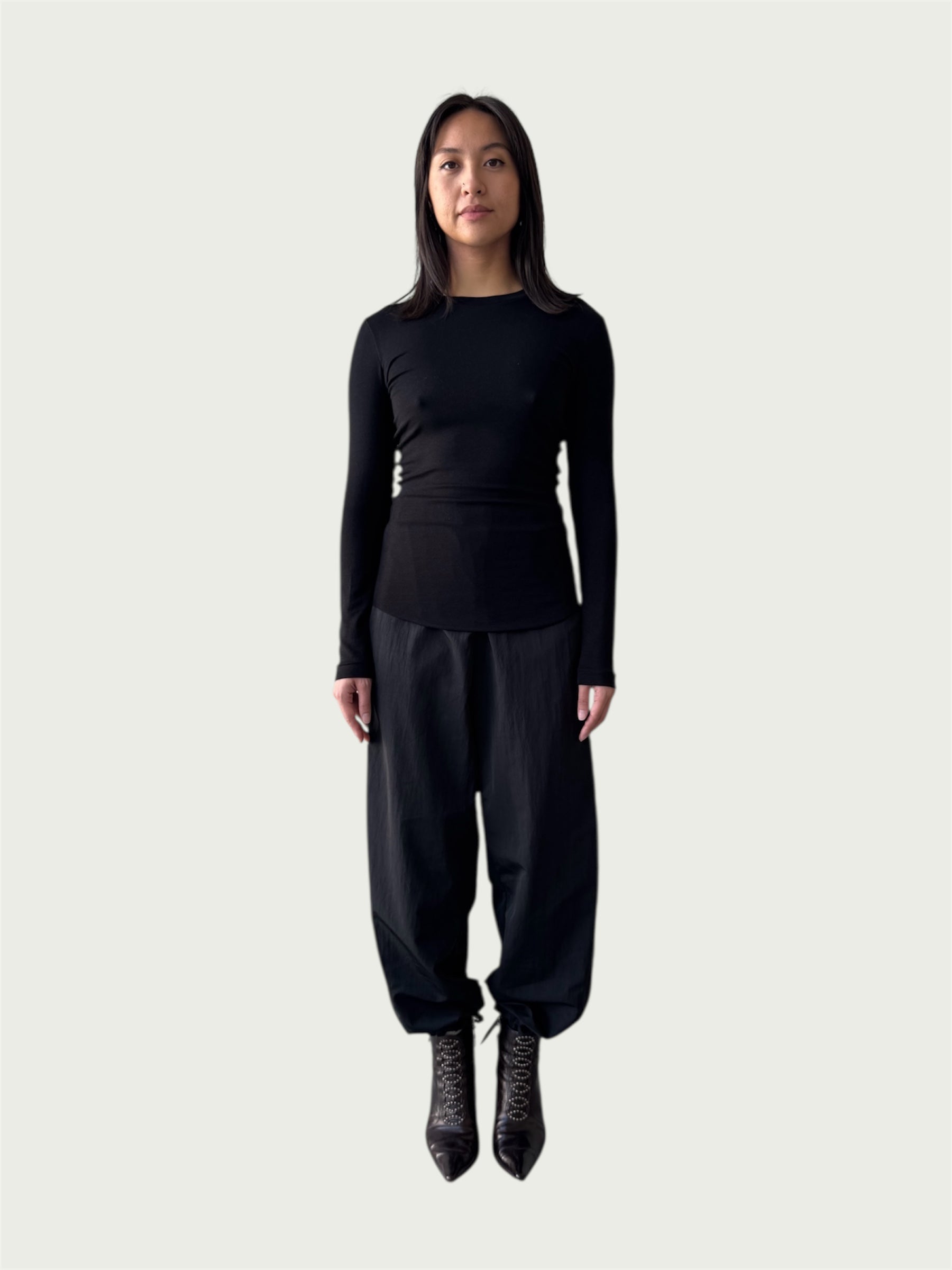Organic Puffed Cotton Integral Balloon Pant in Black