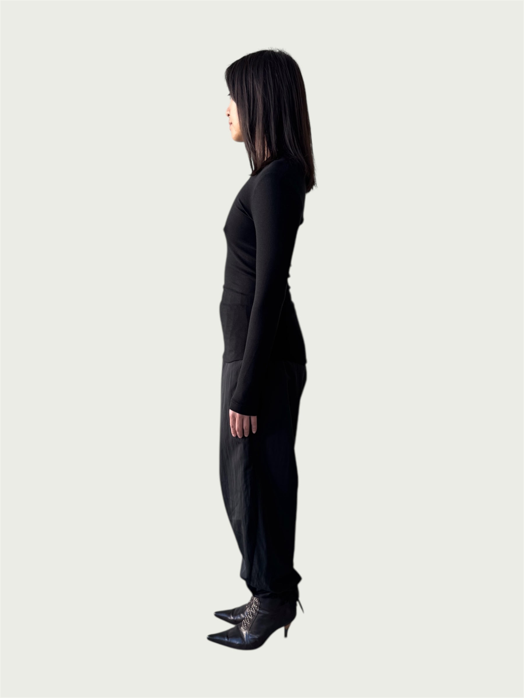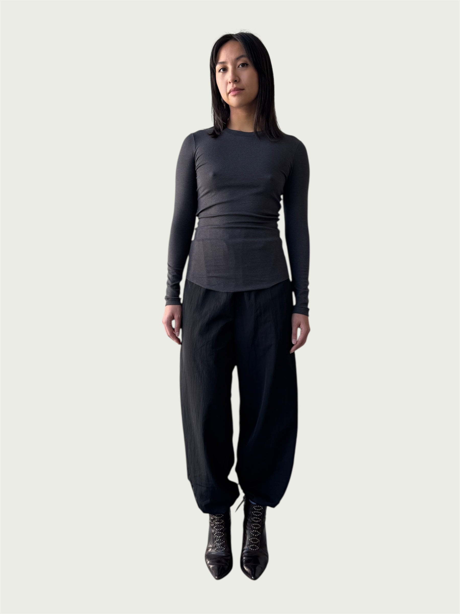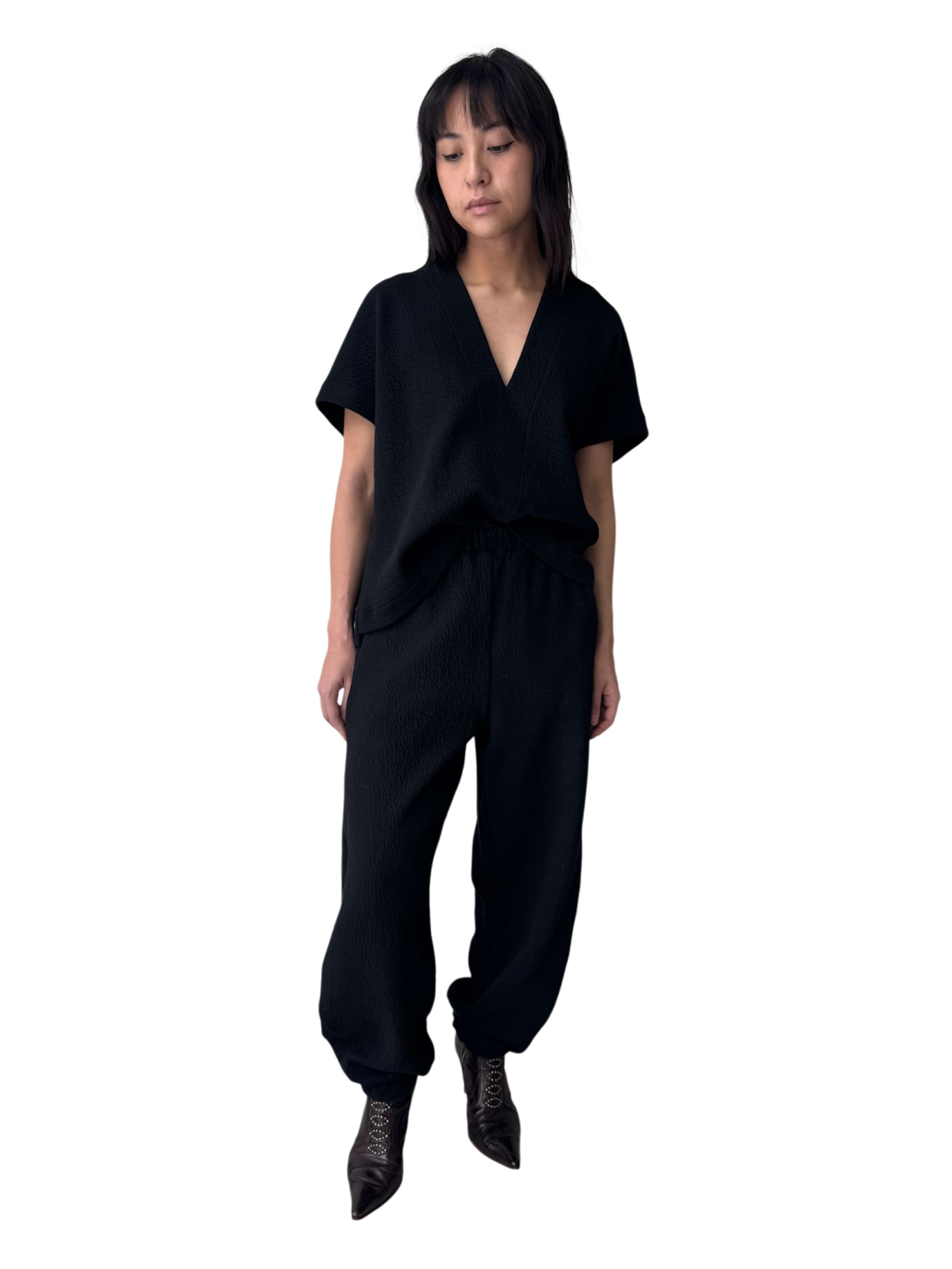 Organic Puffed Cotton Integral Balloon Pant in Black