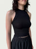 A refined essential. Cut with a jewel neckline and halter silhouette, this tank grazes just below the waist for a clean line when styled with high-rise pieces—no adjusting, no excess, just ease.