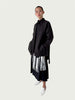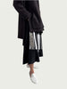 Each piece in the Foil Form I edition is individually hand-folded and pressed with silver foil, creating a mirrored surface that captures light in unexpected ways. As the skirt is unfolded, the foil shifts—transforming a simple geometric sheet into a unique, reflective form. No two are alike.