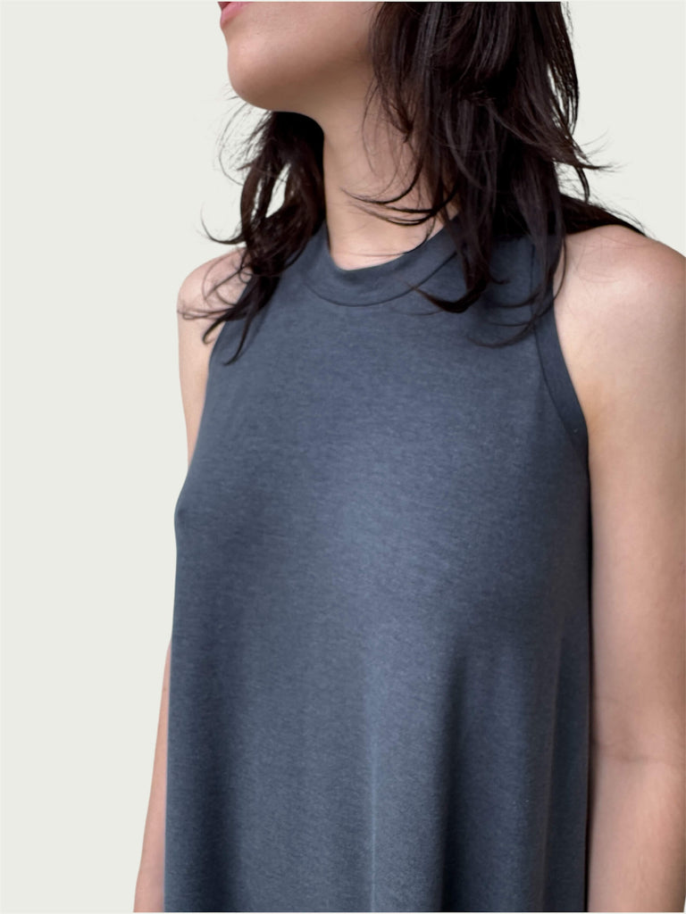 Gently shaped to the top of the bust, this jersey A-frame dress falls into a relaxed, easy silhouette that moves with you. The jewel neckline adds quiet refinement, while the sweeping hem gives it a sense of flow. Lightweight, breathable, and easy to layer—this is an everyday essential designed for versatility and comfort.