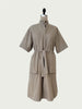 Designed with ample volume for a feeling of freedom and ease. The structured silhouette is quieted with a belt that pulls in the volume and accentuates the waist.