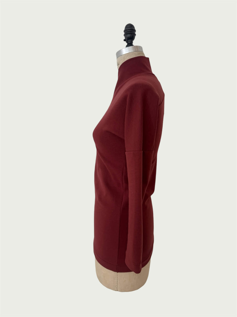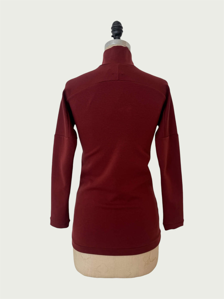 Our Supima cotton top with a cross-over collar detail, slim-cut through the body, ending at the hip. Perfect on its own, or wear it as a foundational layer for colder days.