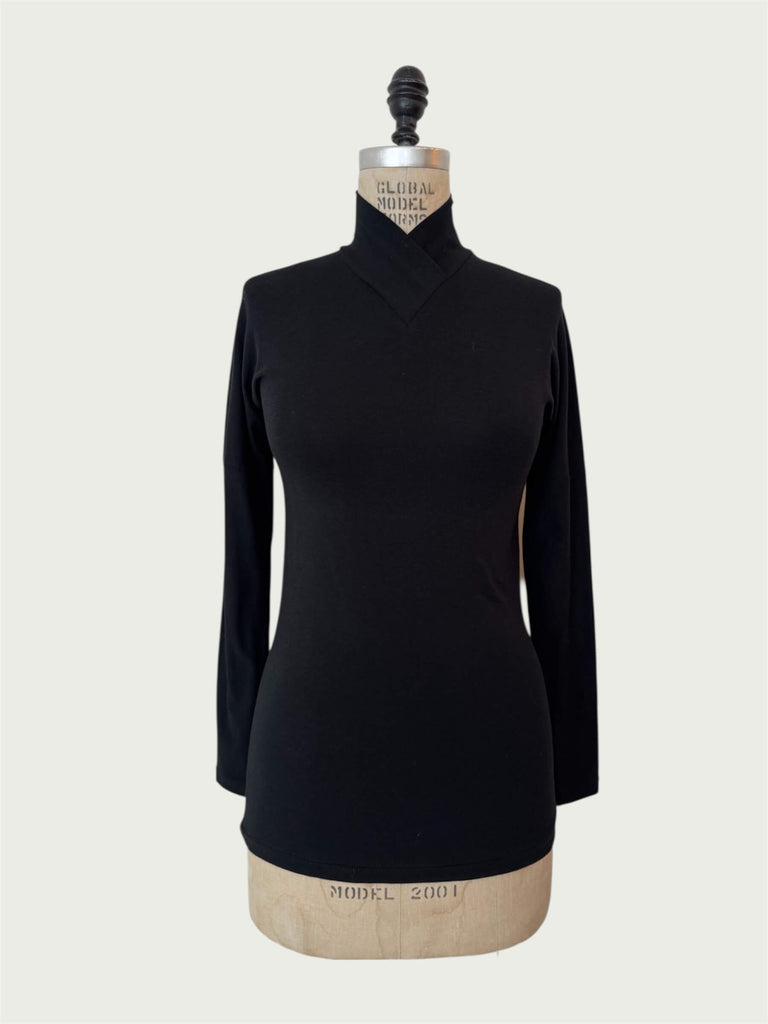 A beautiful cross-over collar detail, slim cut through the body, ending at the hip. Perfect on its own, or wear it as a foundational layer for colder days.