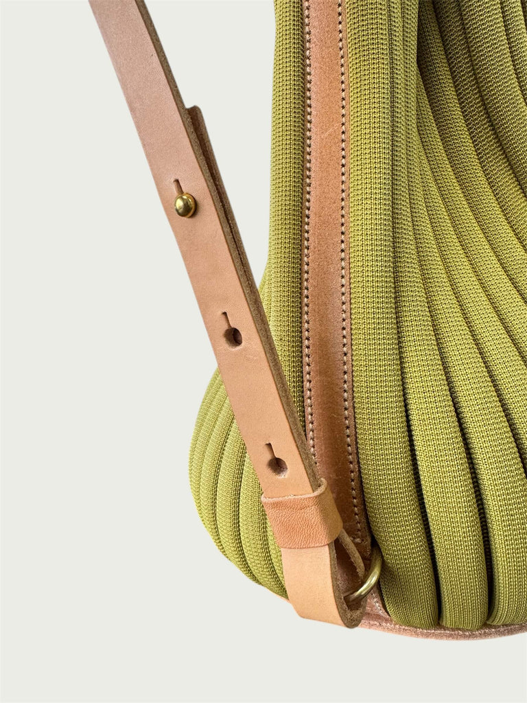 The Exhale Supernova Backpack is a sculptural accessory designed to carry much more than just the essentials. Its 3D knit form expands and contracts to fit your belongings while preserving a refined, sleek silhouette. Finished with bark-tanned leather straps and a distinctive circular base, this backpack balances flexibility and structure with everyday elegance. Whether you're commuting, exploring, or on a weekend getaway, the Exhale Supernova Backpack offers the perfect combination of style and practicality.