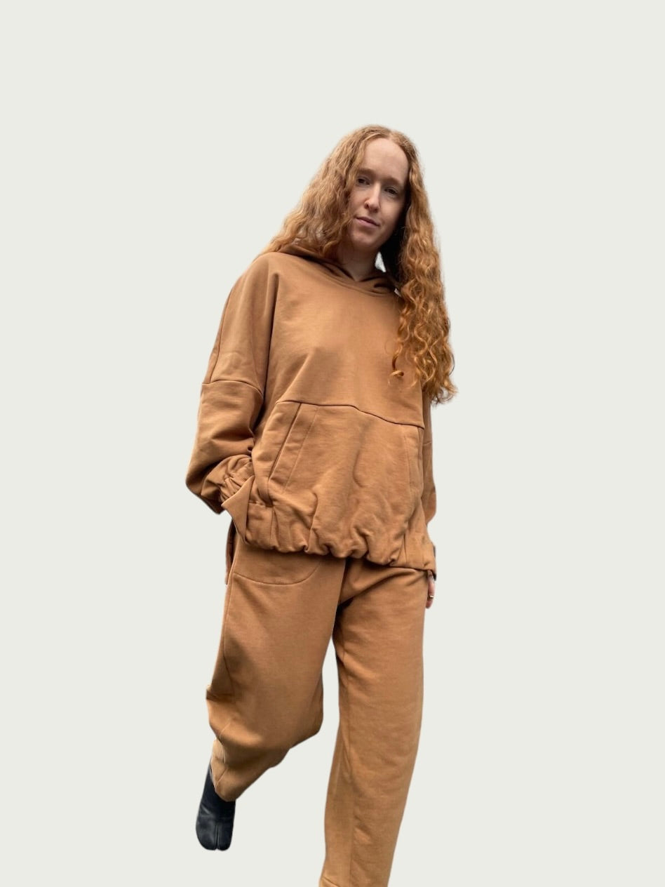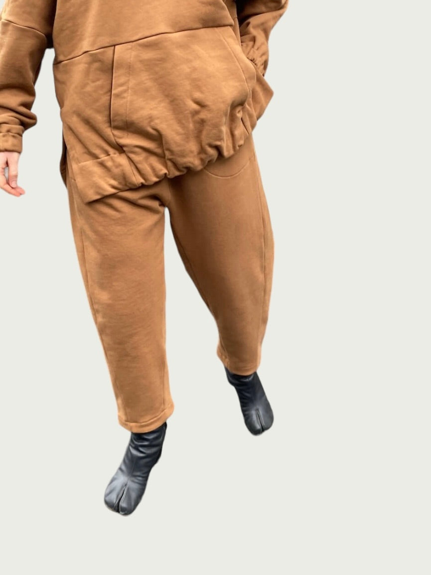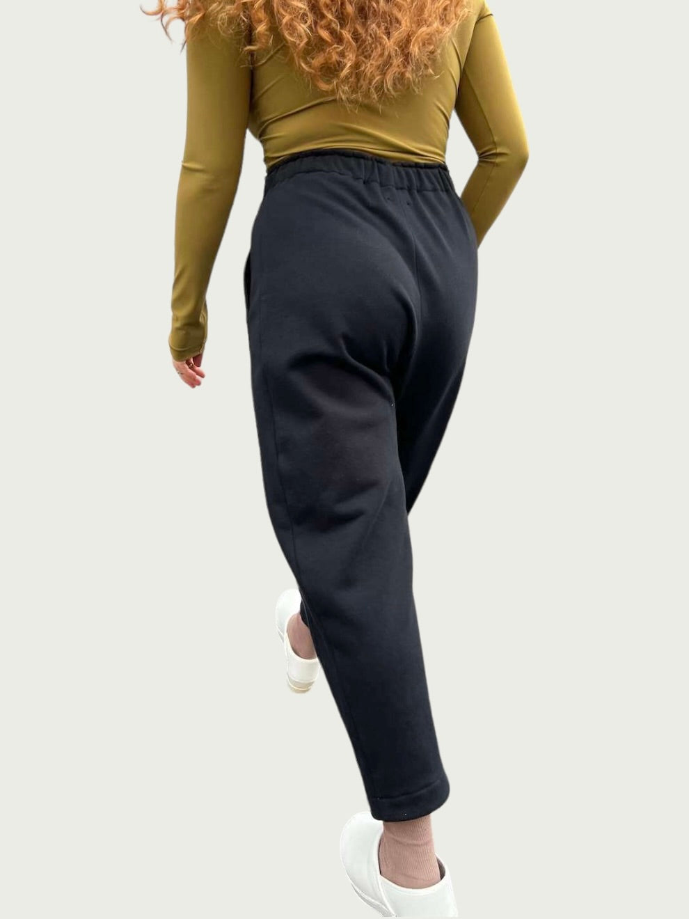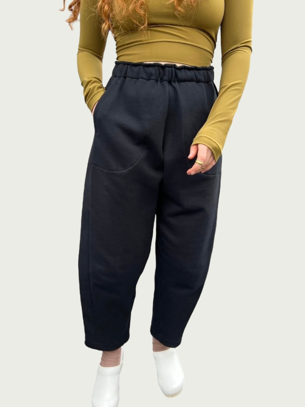 Organic Puffed Cotton Integral Balloon Pants in Brushed Black