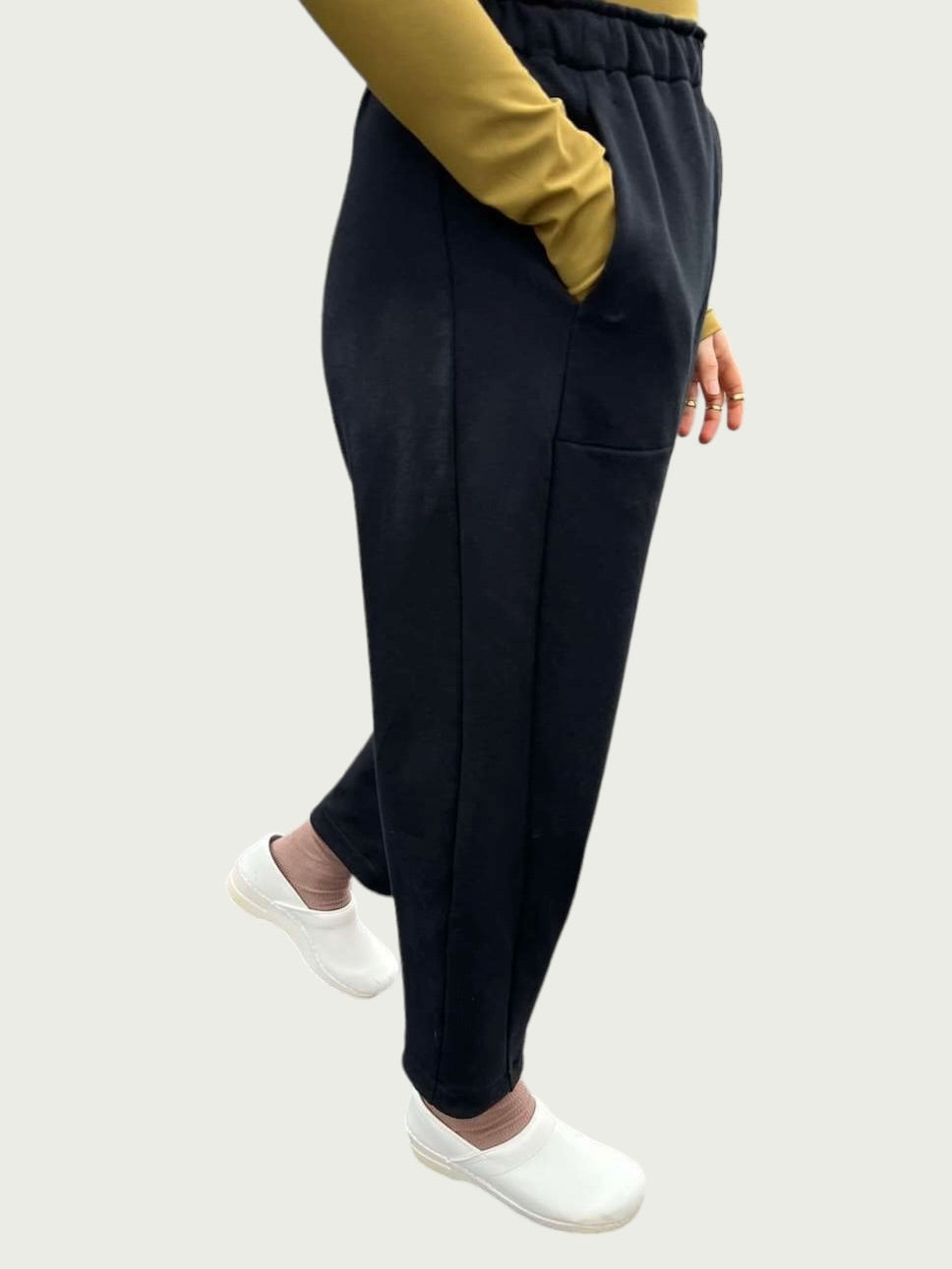 Organic Puffed Cotton Wide-Leg Pant in Brushed Black