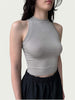 A refined essential. Cut with a jewel neckline and halter silhouette, this tank grazes just below the waist for a clean line when styled with high-rise pieces—no adjusting, no excess, just ease.