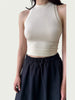 A refined essential. Cut with a jewel neckline and halter silhouette, this tank grazes just below the waist for a clean line when styled with high-rise pieces—no adjusting, no excess, just ease.