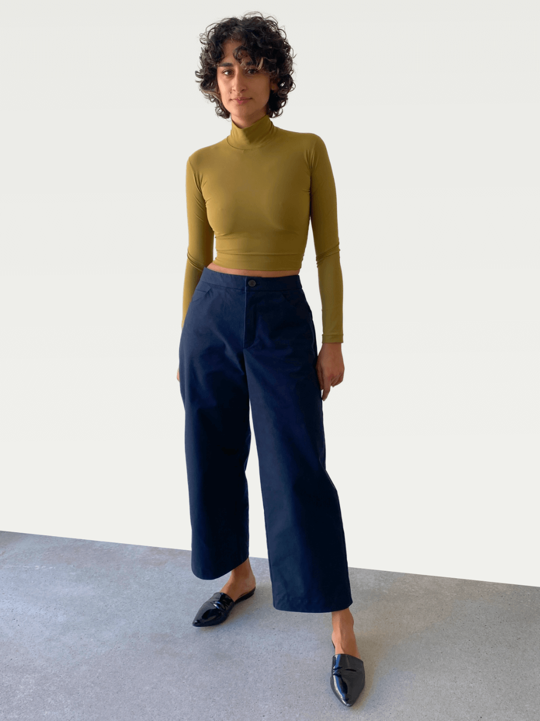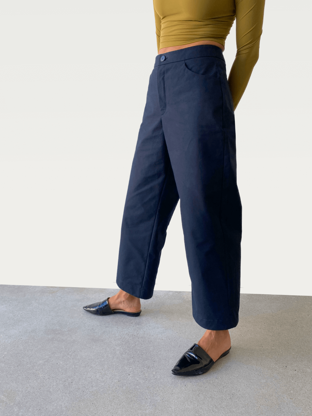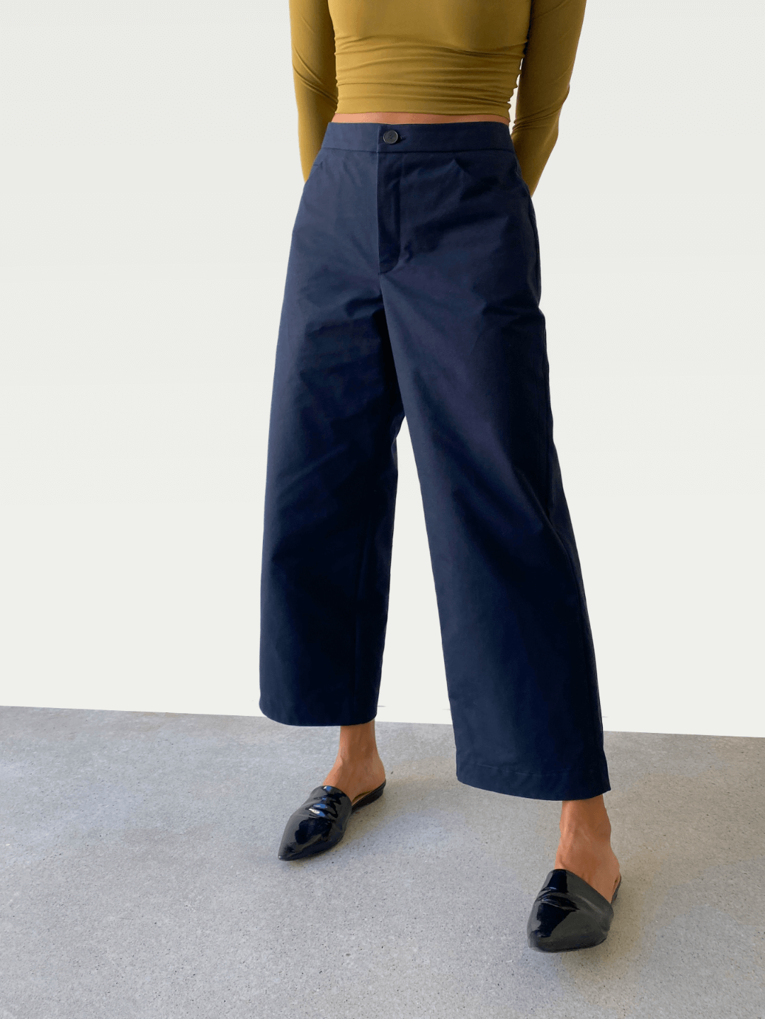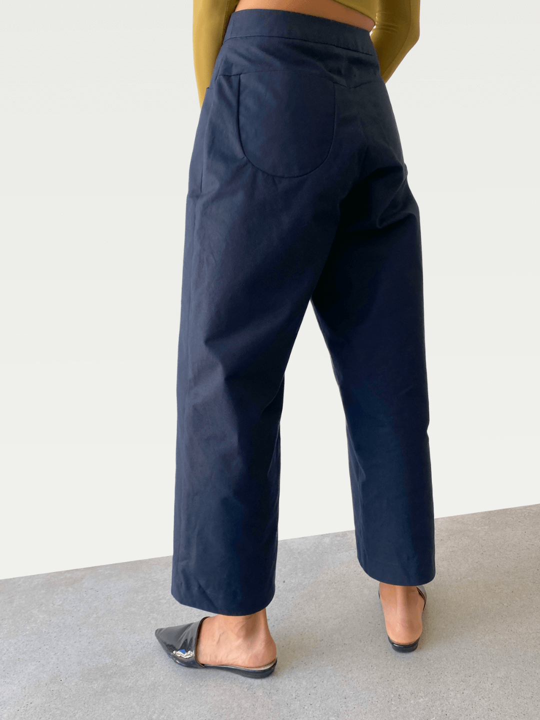 Cotton Wide-Leg Trouser in Deep Navy Blue