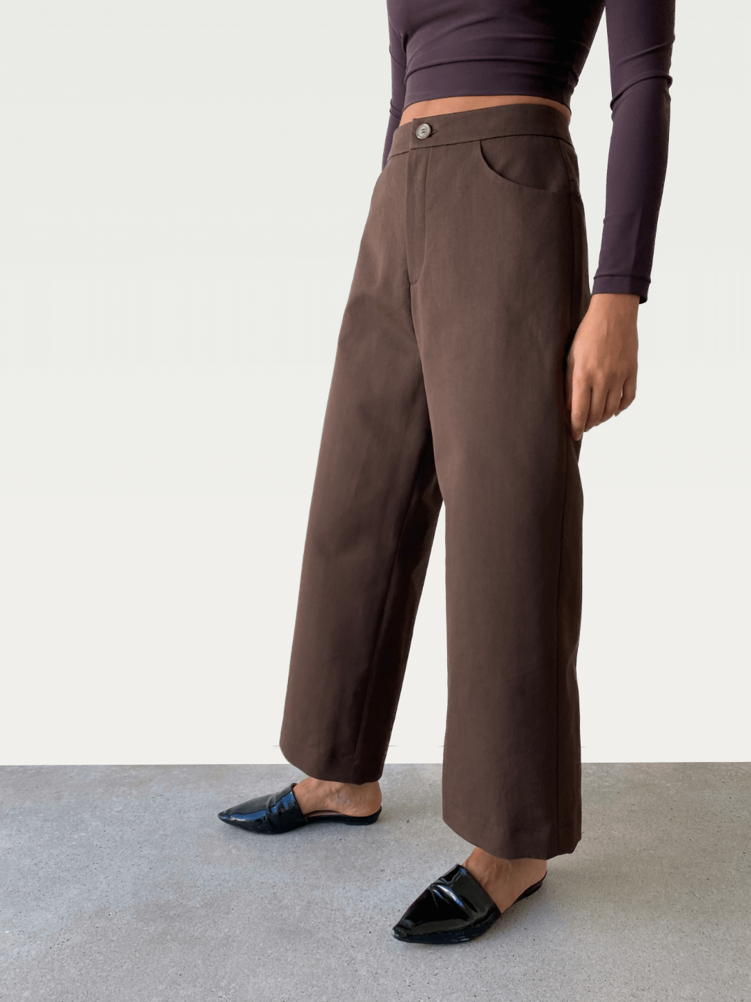Cotton Wide-Leg Trouser in Wood Brown